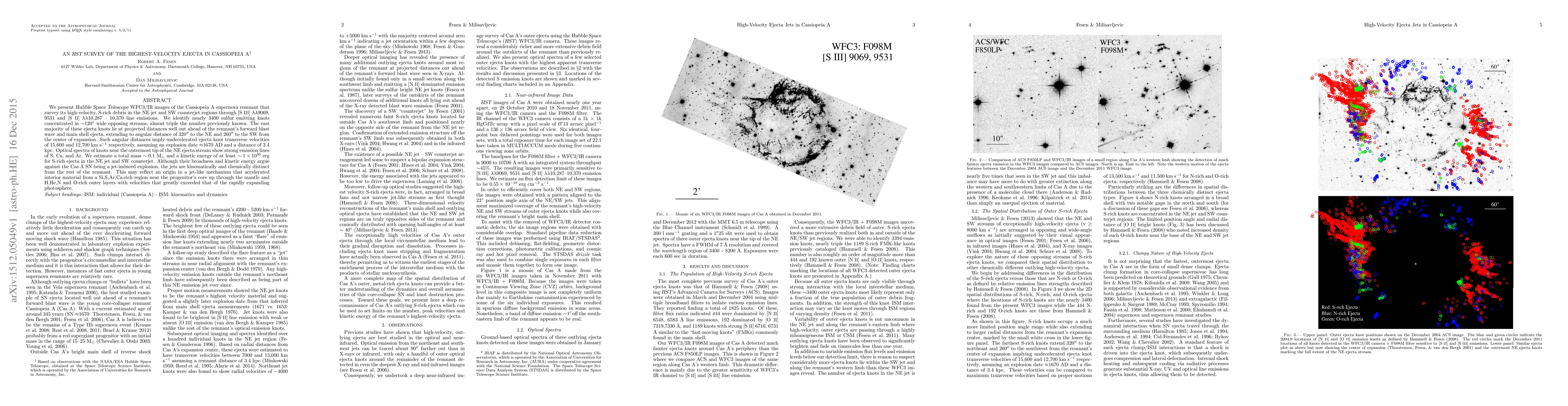 This study uses HST WFC3/IR images to identify nearly 3,400 high-velocity sulfur-rich ejecta knots in the Cassiopeia A supernova remnant, revealing a jet-like mechanism that accelerated material from the progenitor's core. The ejecta exhibit transverse velocities up to 15,600 km/s, suggesting a kinetic energy of at least ~1 x10^50 erg.