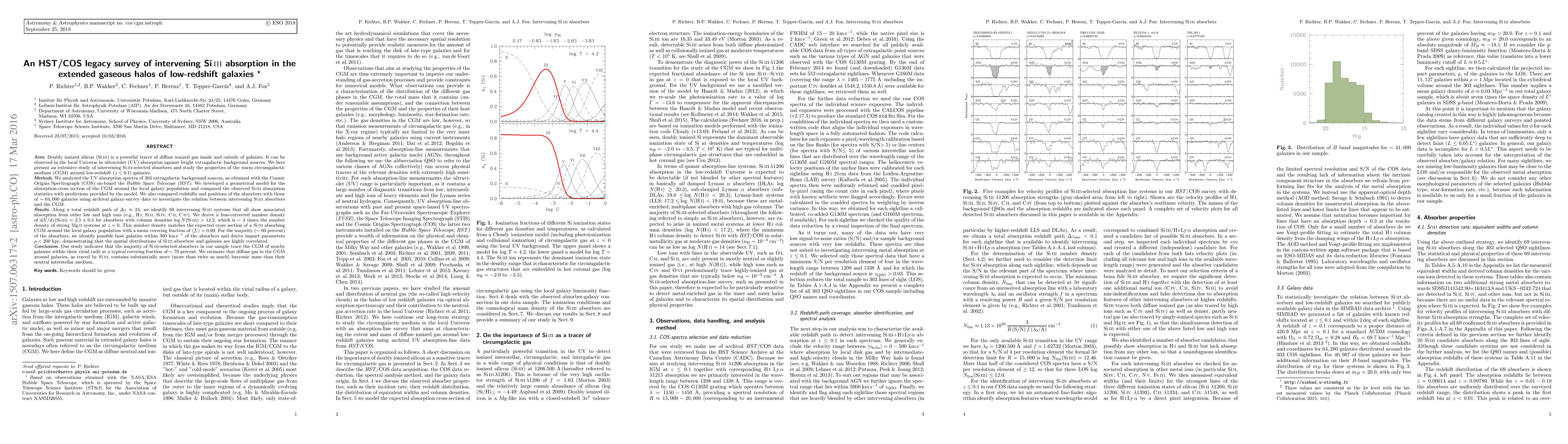 Doubly ionized silicon (SiIII) is a powerful tracer of diffuse ionized gas inside and outside of galaxies. It can be observed in the local Universe in ultraviolet (UV) absorption against bright extragalactic background sources. We here present an extensive study of intervening SiIII-selected absorbers and their relation to the circumgalactic medium (CGM) of galaxies at low redshift (z<=0.1), based on the analysis of UV absorption spectra along 303 extragalactic lines of sight obtained with the Cosmic Origins Spectrograph (COS) on board the Hubble Space Telescope (HST). Along a total redshift path of Dz=24 we identify 69 intervening SiIII systems that all show associated absorption from other low and high ions. We derive a bias-corrected number density of dN/dz(SiIII)=2.5 for absorbers with column densities log N(SiIII)>12.2. We develop a geometrical model for the absorption-cross section of the CGM around the local galaxy population and find excellent agreement between the model predictions and the observations. We further compare redshifts and positions of the absorbers with that of ~64,000 galaxies using archival galaxy-survey data. For the majority of the absorbers we identify possible host galaxies within 300 km/s of the absorbers and derive impact parameters rho<200 kpc, demonstrating that the spatial distributions of SiIII absorbers and galaxies are highly correlated. Our study indicates that the majority of SiIII-selected absorbers in our sample trace the CGM of nearby galaxies within their virial radii at a typical covering fraction of ~70 per cent. From a detailed ionization model we estimate that diffuse gas in the CGM around galaxies, as traced by SiIII, contains substantially more baryonic mass than their neutral interstellar medium.