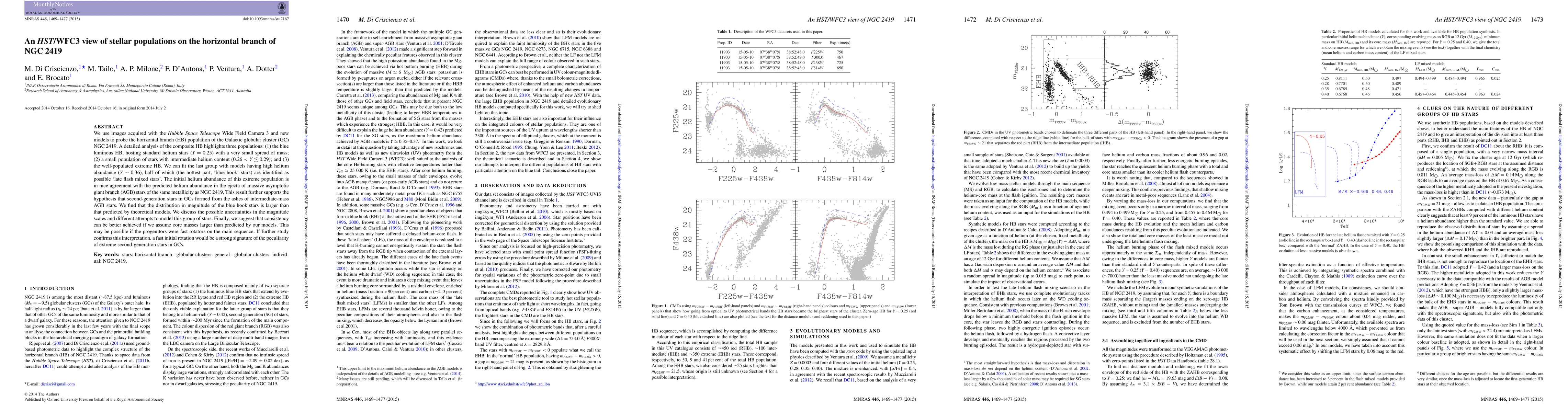 cluster (GC) NGC 2419. A detailed analysis of the composite HB highlights three