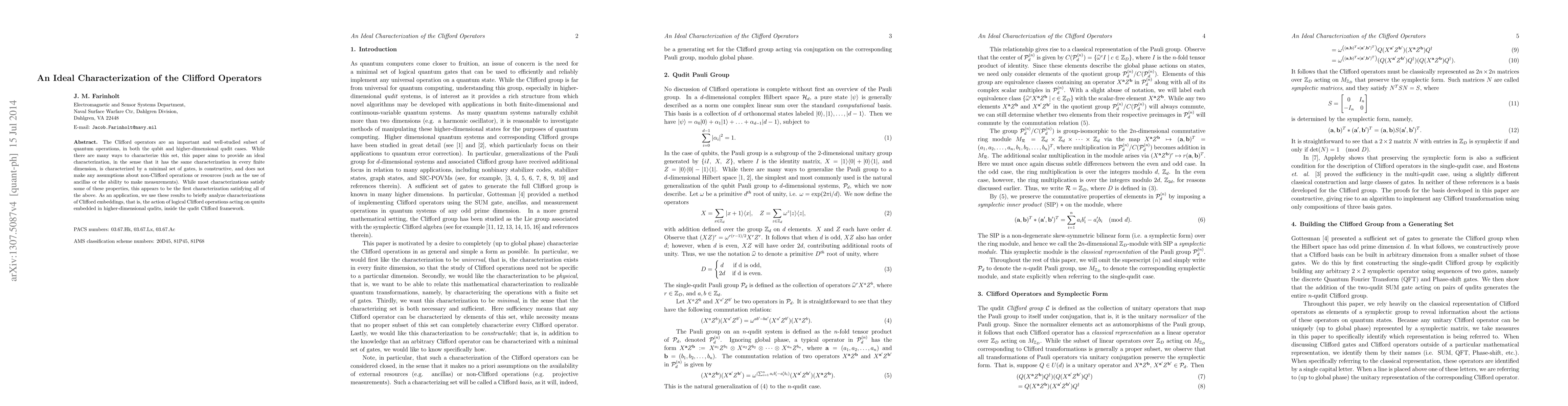 The Clifford operators are an important and well-studied subset of quantum operations, in both the qubit and higher-dimensional qudit cases. While there are many ways to characterize this set, this paper aims to provide an ideal characterization, in the sense that it has the same characterization in every finite dimension, is characterized by a minimal set of gates, is constructive, and does not make any assumptions about non-Clifford operations or resources (such as the use of ancillas or the ability to make measurements). While most characterizations satisfy some of these properties, this appears to be the first characterization satisfying all of the above. As an application, we use these results to briefly analyze characterizations of Clifford embeddings, that is, the action of logical Clifford operations acting on qunits embedded in higher-dimensional qudits, inside the qudit Clifford framework.