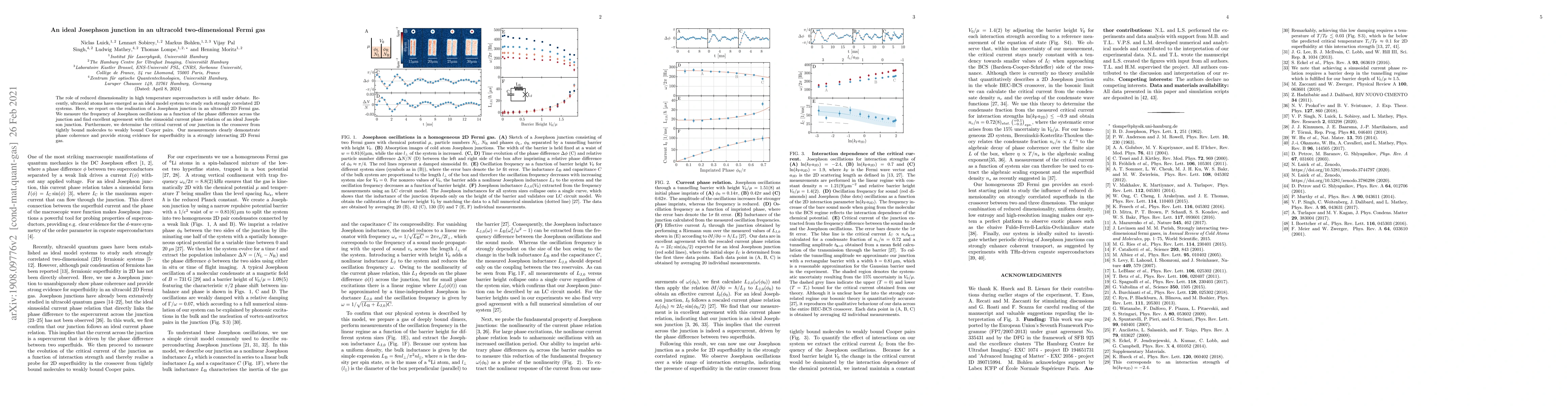 This paper reports the creation of a Josephson junction in an ultracold two-dimensional Fermi gas, demonstrating excellent agreement with the ideal Josephson junction's sinusoidal current-phase relation. The study also determines the critical current, providing evidence for superfluidity in a strongly interacting 2D Fermi gas.