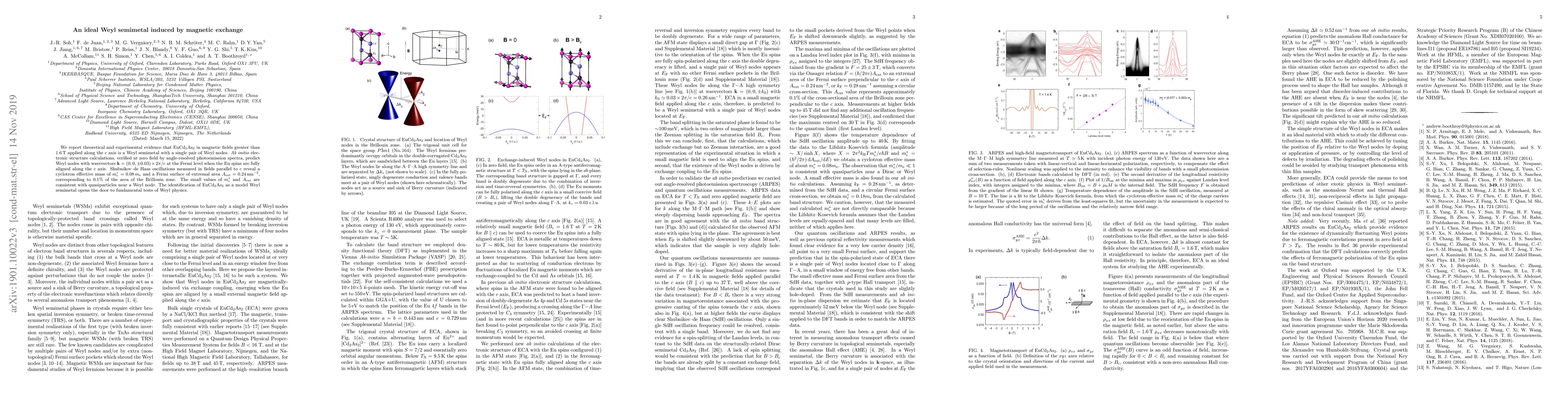 Weyl semimetals exhibit exceptional quantum electronic transport due to the presence of topologically-protected band crossings called Weyl nodes. The nodes come in pairs with opposite chirality, but their number and location in momentum space is otherwise material specific. Following the initial discoveries there is now a need for better material realizations, ideally comprising a single pair of Weyl nodes located at or very close to the Fermi level and in an energy window free from other overlapping bands. Here we propose the layered intermetallic EuCd$_2$As$_2$ to be such a system. We show that Weyl nodes in EuCd$_2$As$_2$ are magnetically-induced via exchange coupling, emerging when the Eu spins are aligned by a small external magnetic field. The identification of EuCd$_2$As$_2$ as a model magnetic Weyl semimetal, evidenced here by ab initio calculations, photoemission spectroscopy, quantum oscillations and anomalous Hall transport measurements, opens the door to fundamental tests of Weyl physics.