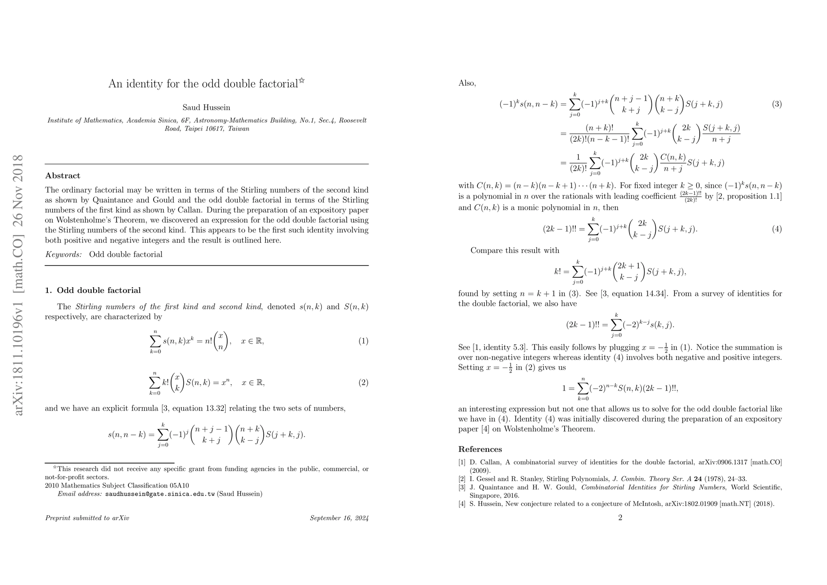 Researchers discover an identity for the odd double factorial using Stirling numbers of the second kind, providing a new expression involving both positive and negative integers.