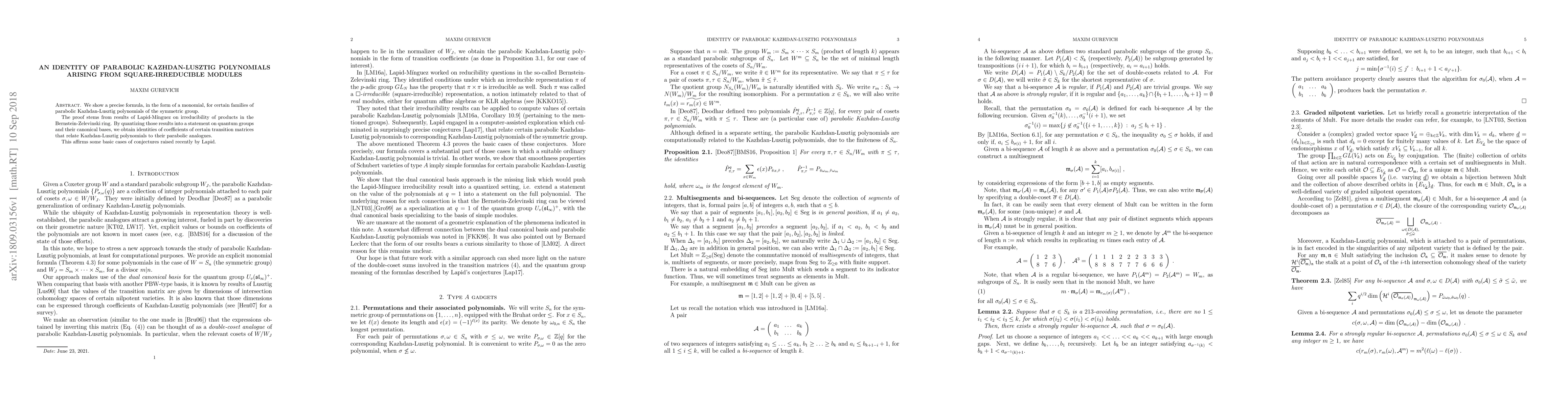 This paper establishes a monomial formula for specific parabolic Kazhdan-Lusztig polynomials via results on the irreducibility of products in the Bernstein-Zelevinski ring, ultimately supporting recent conjectures by Lapid concerning these polynomials. The proof leverages connections to quantum groups and their canonical bases.