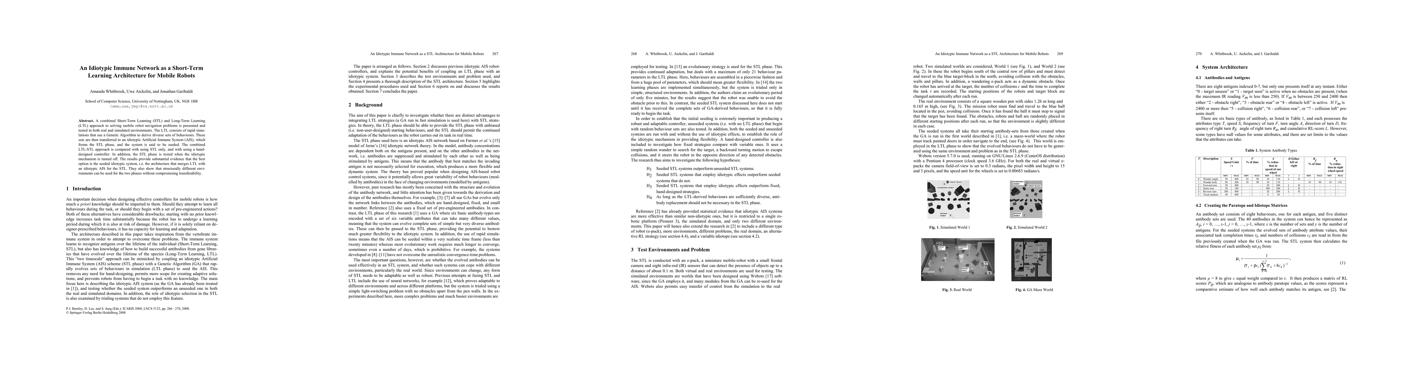 This paper proposes a combined Short-Term Learning (STL) and Long-Term Learning (LTL) approach for mobile robot navigation, utilizing a Genetic Algorithm for LTL and an idiotypic Artificial Immune System for STL. The results indicate that the best performance is achieved by merging LTL with an idiotypic AIS for STL, demonstrating effective transferability across different environments.