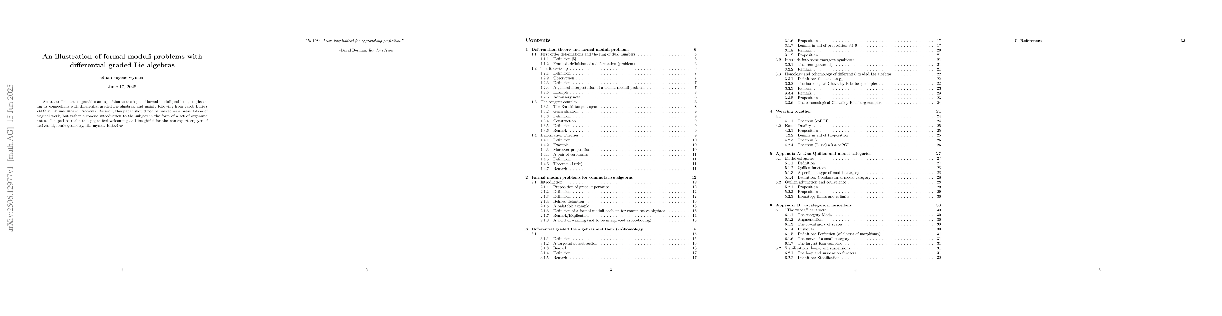This article provides an exposition to the topic of formal moduli problems, emphasizing its connections with differential graded Lie algebras, and mainly following from Jacob Lurie's DAG X: Formal Moduli Problems. As such, this paper should not be viewed as a presentation of original work, but rather a concise introduction to the subject in the form of a set of organized notes. I hoped to make this paper feel welcoming and insightful for the non-expert enjoyer of derived algebraic geometry, like myself. Enjoy!