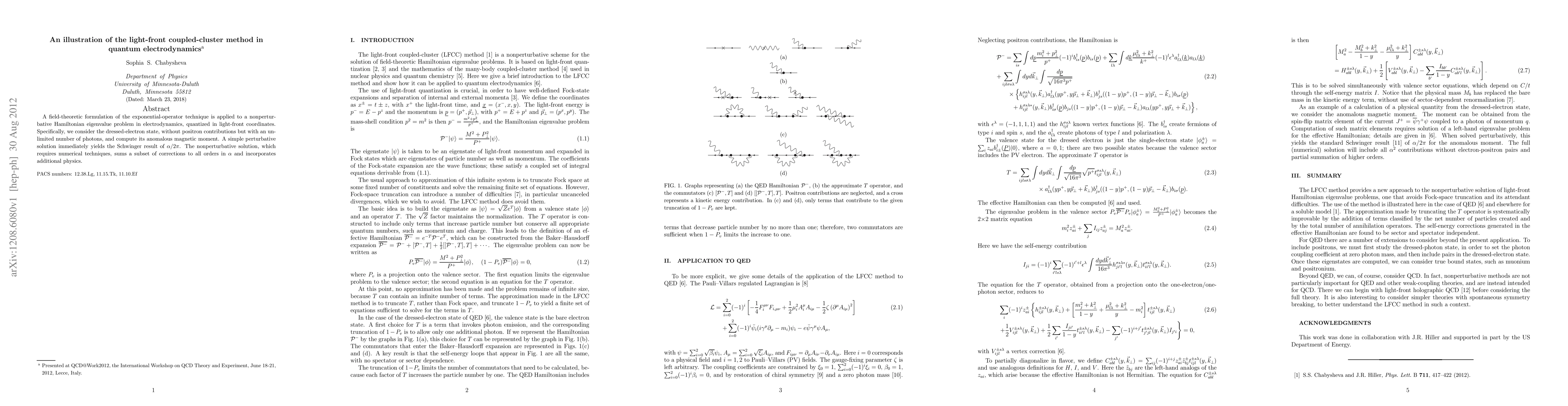 A field-theoretic formulation of the exponential-operator technique is applied to a nonperturbative Hamiltonian eigenvalue problem in electrodynamics, quantized in light-front coordinates. Specifically, we consider the dressed-electron state, without positron contributions but with an unlimited number of photons, and compute its anomalous magnetic moment. A simple perturbative solution immediately yields the Schwinger result of \alpha/2\pi. The nonperturbative solution, which requires numerical techniques, sums a subset of corrections to all orders in \alpha\ and incorporates additional physics.