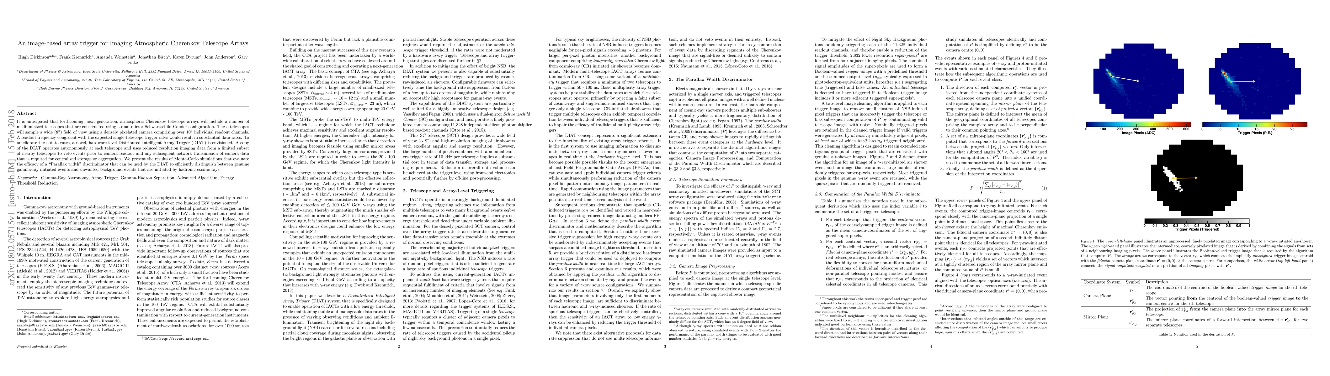 This paper proposes a Distributed Intelligent Array Trigger (DIAT) for next-generation atmospheric Cherenkov telescope arrays to manage high data rates by using reduced resolution imaging to veto unwanted background events before full camera readout. Monte-Carlo simulations demonstrate the efficacy of a "Parallax width" discriminator in distinguishing genuine gamma-ray events from cosmic ray-initiated background noise.