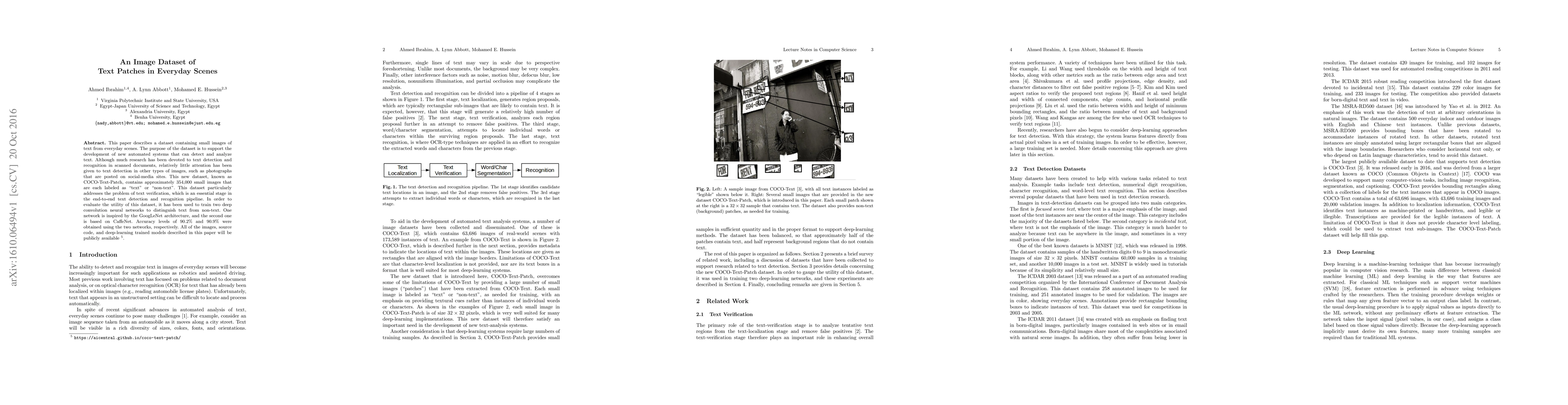 A new dataset of 354,000 small images containing labeled text from everyday scenes is released to support automated text detection and analysis systems.