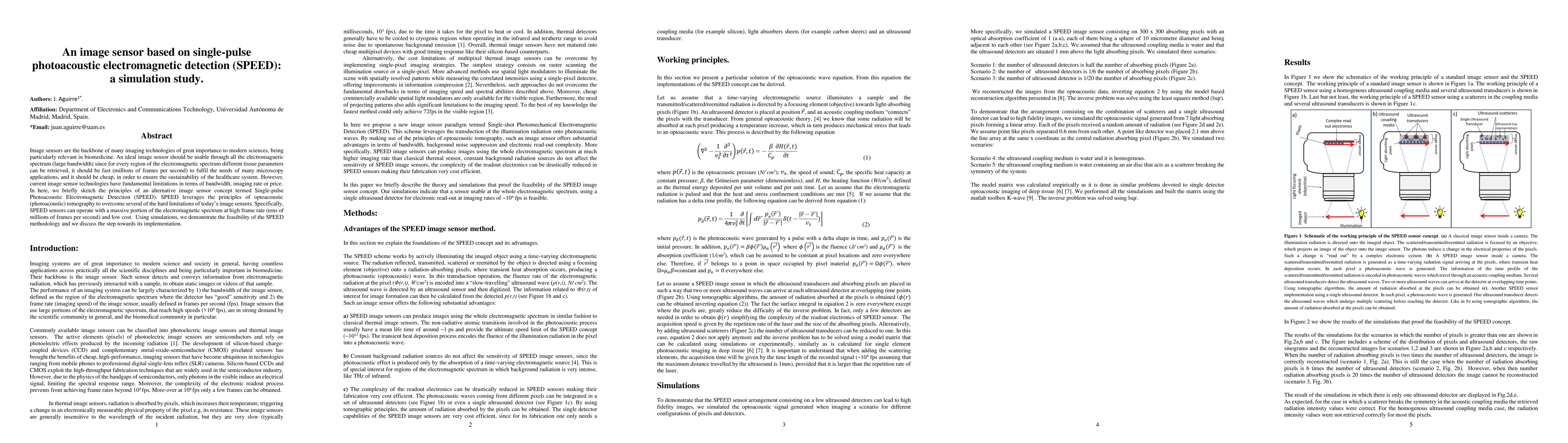 Image sensors are the backbone of many imaging technologies of great importance to modern sciences, being particularly relevant in biomedicine. An ideal image sensor should be usable through all the electromagnetic spectrum (large bandwidth), it should be fast (millions of frames per second) to fulfil the needs of many microscopy applications, and it should be cheap, in order to ensure the sustainability of the healthcare system. However, current image sensor technologies have fundamental limitations in terms of bandwidth, imaging rate or price. In here, we briefly sketch the principles of an alternative image sensor concept termed Single-pulse Photoacoustic Electromagnetic Detection (SPEED). SPEED leverages the principles of optoacoustic (photoacoustic) tomography to overcome several of the hard limitations of todays image sensors. Specifically, SPEED sensors can operate with a massive portion of the electromagnetic spectrum at high frame rate (millions of frames per second) and low cost. Using simulations, we demonstrate the feasibility of the SPEED methodology and we discuss the step towards its implementation.