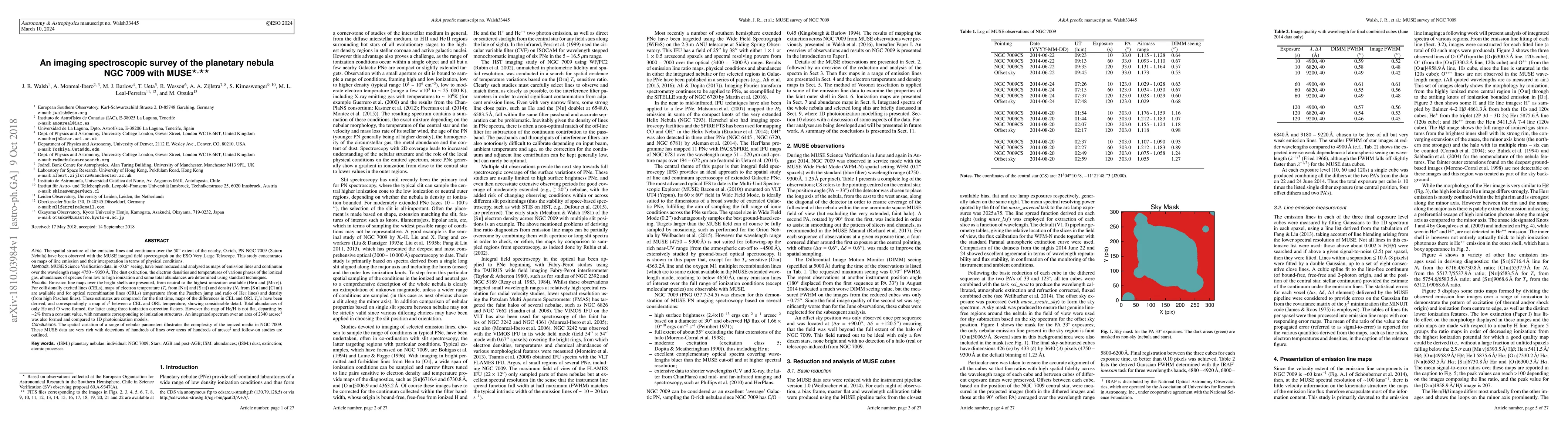This paper presents a detailed spectroscopic survey of the planetary nebula NGC 7009 using the MUSE spectrograph, revealing complex spatial variations in emission lines, electron temperatures, and densities. The study highlights discrepancies between collisionally excited lines and optical recombination lines, and discusses the non-uniform distribution of helium, suggesting intricate ionization structures within the nebula.