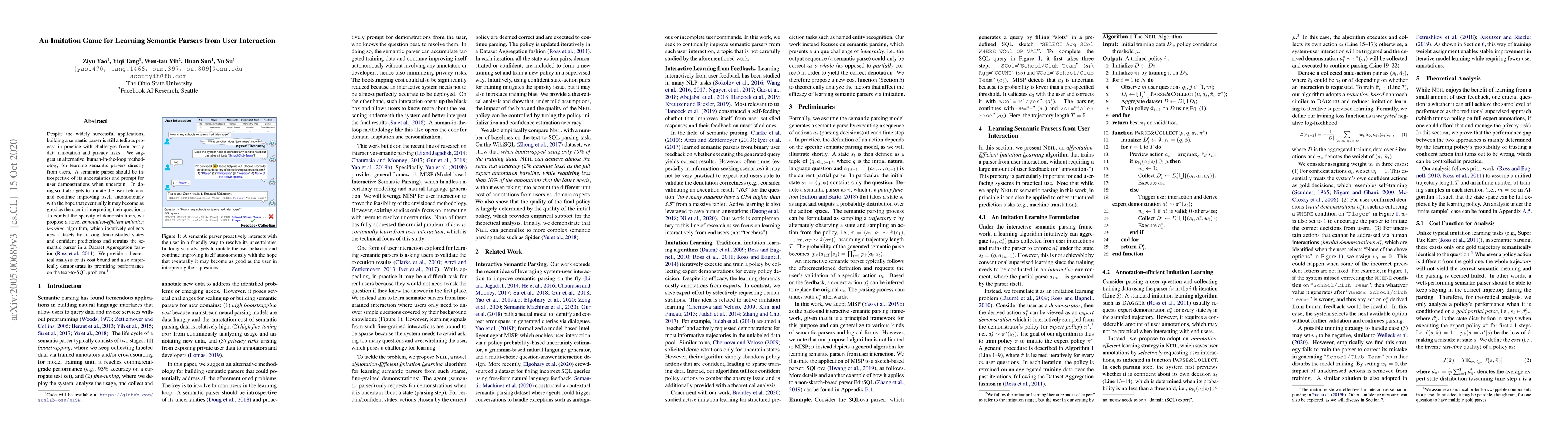 This paper proposes a human-in-the-loop approach for learning semantic parsers through user interactions, aiming to reduce data annotation costs and privacy risks. The method uses an imitation learning algorithm that iteratively collects and retrains datasets, demonstrating promising results on text-to-SQL tasks.