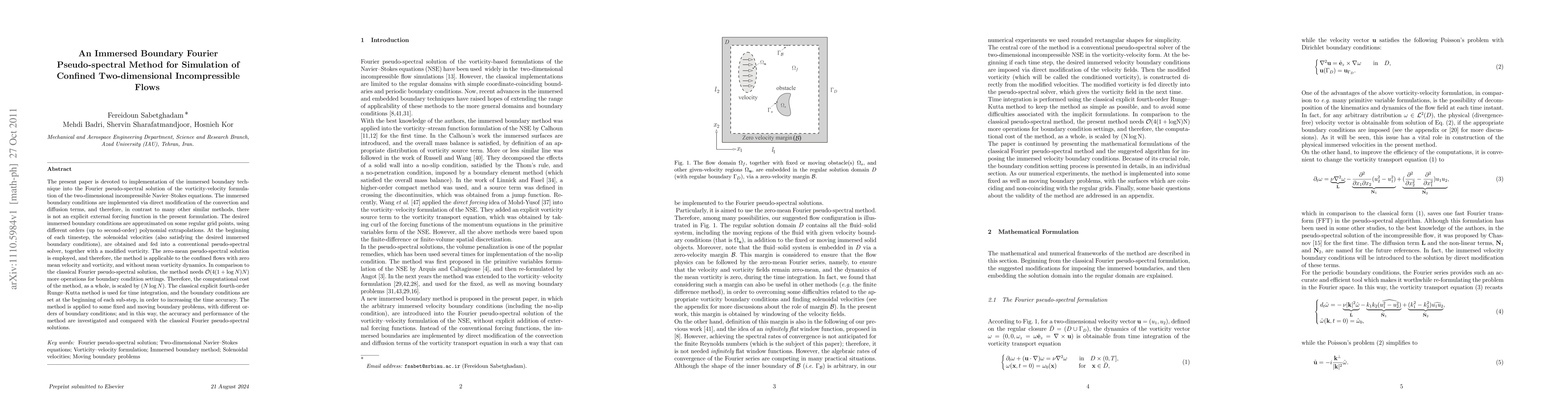 This paper presents an immersed boundary method integrated into Fourier pseudo-spectral techniques for simulating confined two-dimensional incompressible flows. The method modifies convection and diffusion terms directly, avoiding explicit external forcing, and employs polynomial extrapolations to approximate boundary conditions on a regular grid.