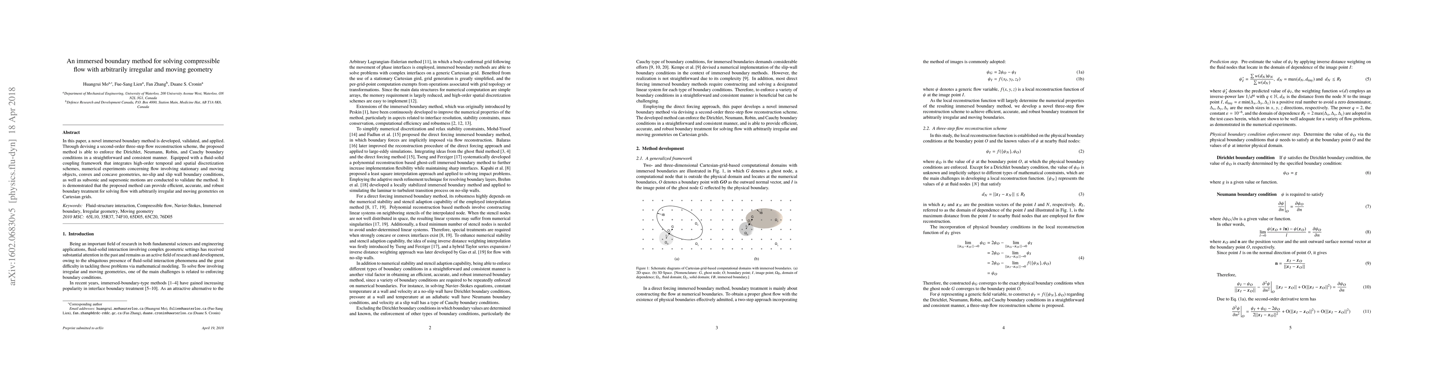 This paper introduces a novel immersed boundary method for solving compressible flow around arbitrarily irregular and moving geometries. The method employs a second-order three-step flow reconstruction scheme and fluid-solid coupling framework to accurately enforce various boundary conditions, validated through experiments involving diverse flow scenarios.