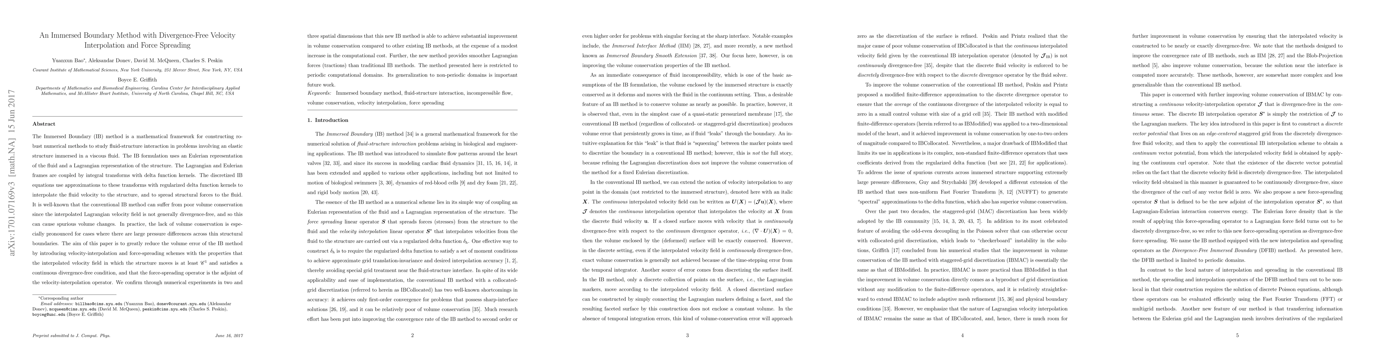 This paper proposes an improved Immersed Boundary (IB) method that enhances volume conservation by ensuring the interpolated velocity field is divergence-free and smooth. The new method achieves better volume conservation and smoother forces compared to traditional IB methods, albeit at a slight increase in computational cost.