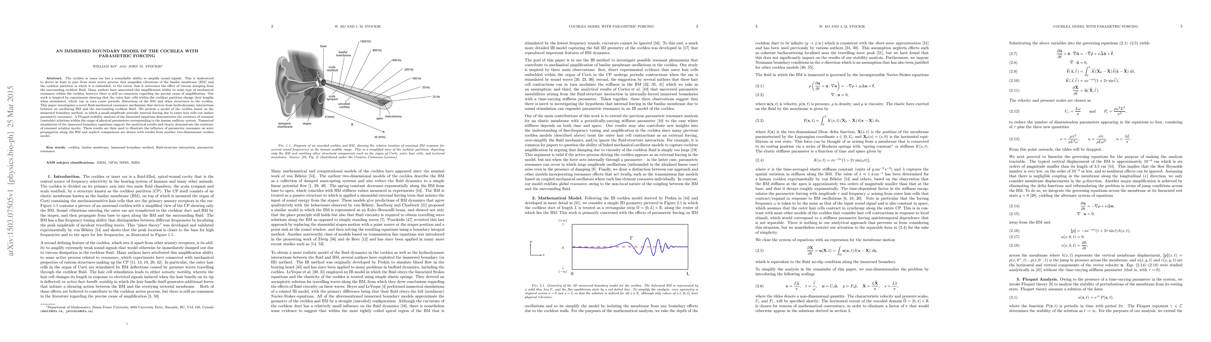 This paper proposes an immersed boundary model of the cochlea to explore how parametric resonance induced by outer hair cells can amplify sound signals. The study uses a Floquet stability analysis and numerical simulations to demonstrate the existence of resonant solutions, illustrating the impact on wave propagation along the basilar membrane.
