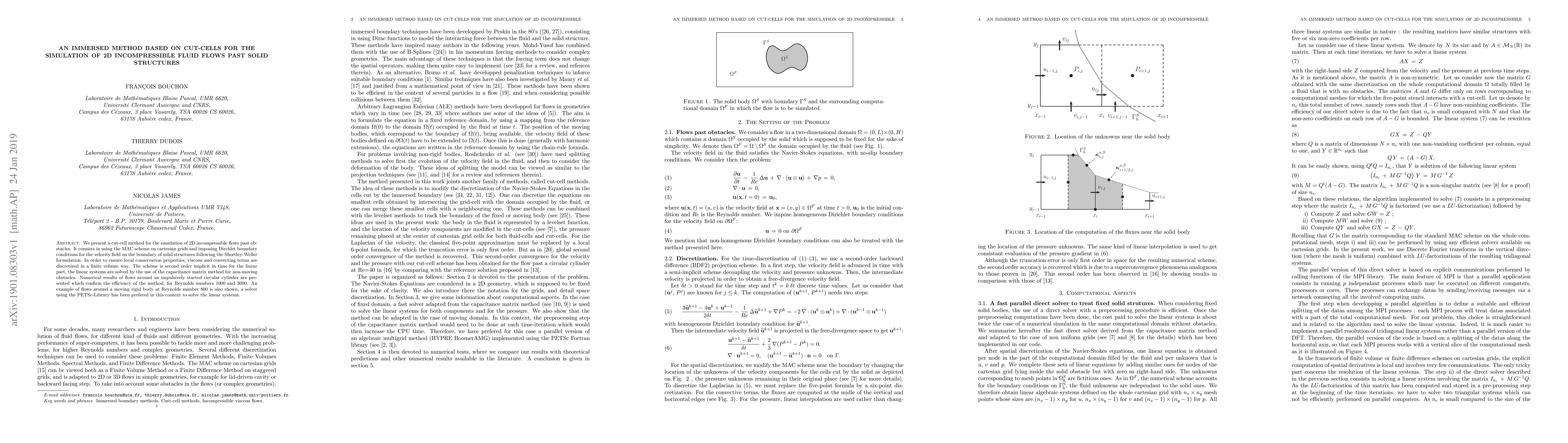 This paper introduces an immersed cut-cell method for simulating 2D incompressible fluid flows around solid structures using a MAC scheme on Cartesian grids. The method ensures local conservation through finite volume discretization and is validated through numerical simulations of flows around a circular cylinder and a moving rigid body.