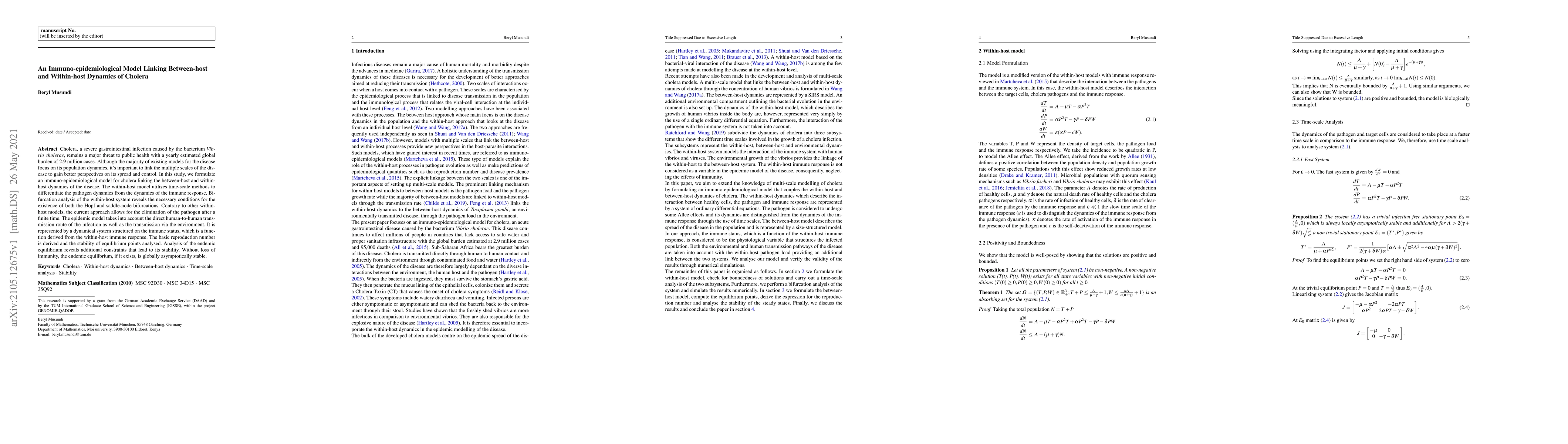 This research develops an immuno-epidemiological model to link cholera's between-host and within-host dynamics, utilizing time-scale methods to differentiate pathogen and immune response. The model's stability and basic reproduction number are analyzed, showing the endemic equilibrium can be globally stable without loss of immunity.
