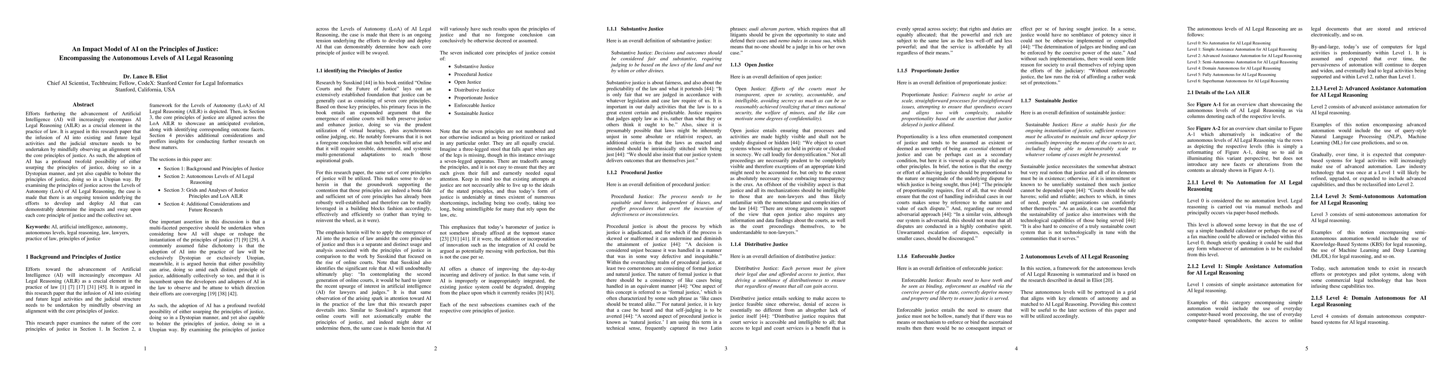 Efforts furthering the advancement of Artificial Intelligence (AI) will increasingly encompass AI Legal Reasoning (AILR) as a crucial element in the practice of law. It is argued in this research paper that the infusion of AI into existing and future legal activities and the judicial structure needs to be undertaken by mindfully observing an alignment with the core principles of justice. As such, the adoption of AI has a profound twofold possibility of either usurping the principles of justice, doing so in a Dystopian manner, and yet also capable to bolster the principles of justice, doing so in a Utopian way. By examining the principles of justice across the Levels of Autonomy (LoA) of AI Legal Reasoning, the case is made that there is an ongoing tension underlying the efforts to develop and deploy AI that can demonstrably determine the impacts and sway upon each core principle of justice and the collective set.
