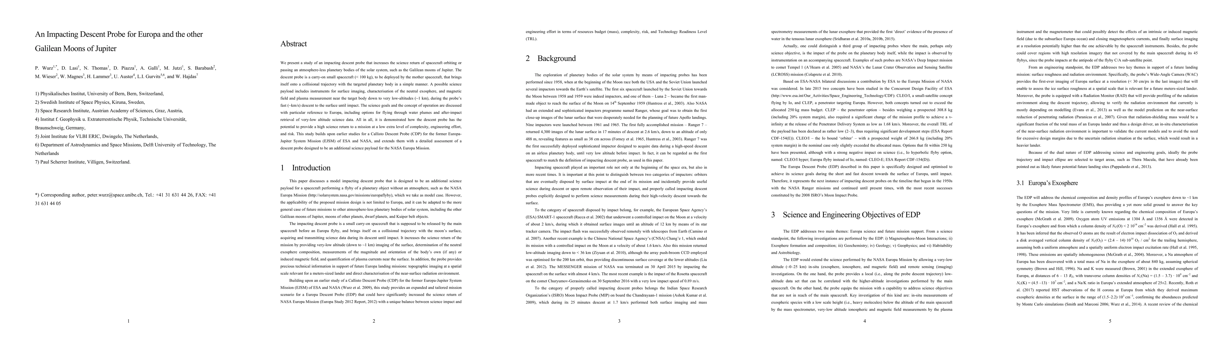 We present a study of an impacting descent probe that increases the science return of spacecraft orbiting or passing an atmosphere-less planetary body of the solar system, such as the Galilean moons of Jupiter. The descent probe is a carry-on small spacecraft (< 100 kg), to be deployed by the mother spacecraft, that brings itself onto a collisional trajectory with the targeted planetary body in a simple manner. A possible science payload includes instruments for surface imaging, characterisation of the neutral exosphere, and magnetic field and plasma measurement near the target body down to very low-altitudes (~1 km), during the probe's fast (~km/s) descent to the surface until impact. The science goals and the concept of operation are discussed with particular reference to Europa, including options for flying through water plumes and after-impact retrieval of very-low altitude science data. All in all, it is demonstrated how the descent probe has the potential to provide a high science return to a mission at a low extra level of complexity, engineering effort, and risk. This study builds upon earlier studies for a Callisto Descent Probe (CDP) for the former Europa-Jupiter System Mission (EJSM) of ESA and NASA, and extends them with a detailed assessment of a descent probe designed to be an additional science payload for the NASA Europa Mission.