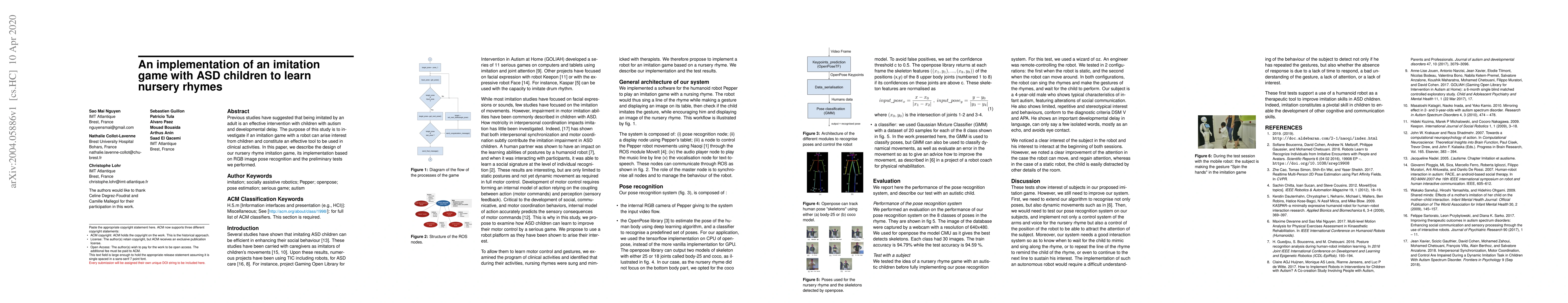 This study explores an imitation game using a robot to engage children with autism in learning nursery rhymes, utilizing RGB image pose recognition for interaction. Preliminary tests indicate the game's potential as an effective and interesting tool for clinical activities.