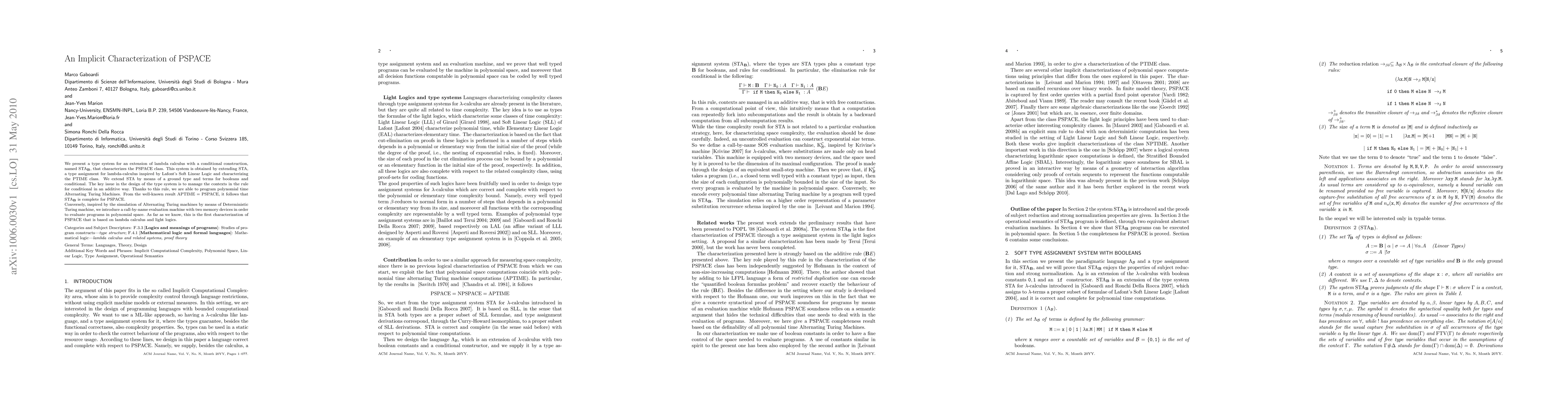 We present a type system for an extension of lambda calculus with a conditional construction, named STAB, that characterizes the PSPACE class. This system is obtained by extending STA, a type assignment for lambda-calculus inspired by Lafont's Soft Linear Logic and characterizing the PTIME class. We extend STA by means of a ground type and terms for booleans and conditional. The key issue in the design of the type system is to manage the contexts in the rule for conditional in an additive way. Thanks to this rule, we are able to program polynomial time Alternating Turing Machines. From the well-known result APTIME = PSPACE, it follows that STAB is complete for PSPACE. Conversely, inspired by the simulation of Alternating Turing machines by means of Deterministic Turing machine, we introduce a call-by-name evaluation machine with two memory devices in order to evaluate programs in polynomial space. As far as we know, this is the first characterization of PSPACE that is based on lambda calculus and light logics.