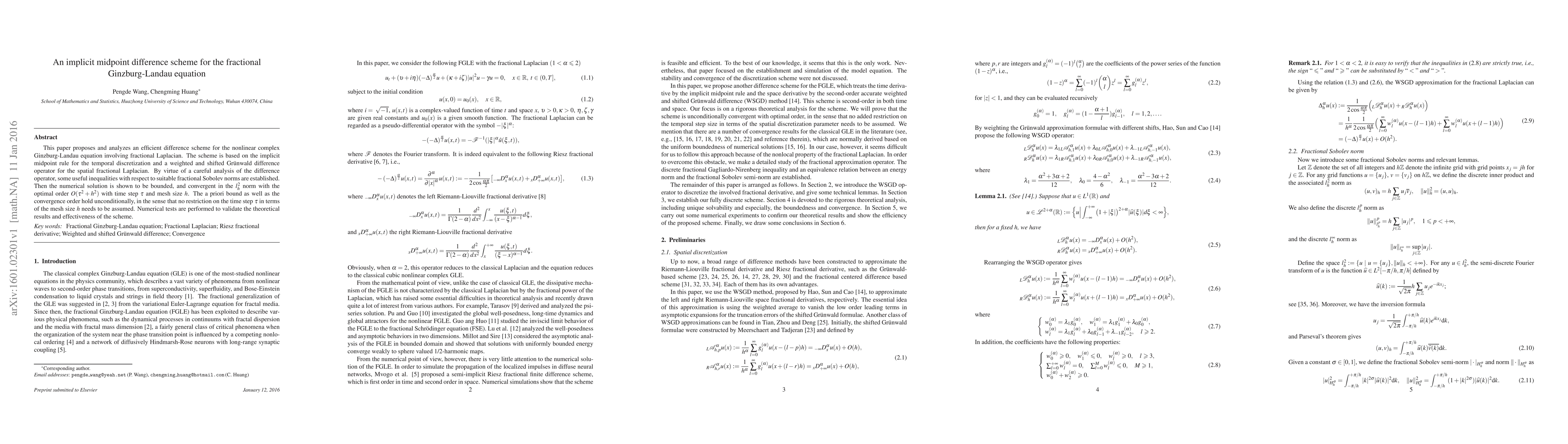 This paper introduces an implicit midpoint difference scheme for solving the fractional Ginzburg-Landau equation, utilizing the temporal midpoint rule and a weighted and shifted Grünwald difference operator for spatial discretization. The scheme is proven to be bounded and convergent with optimal order $O(\tau^2+h^2)$, validated by numerical tests.