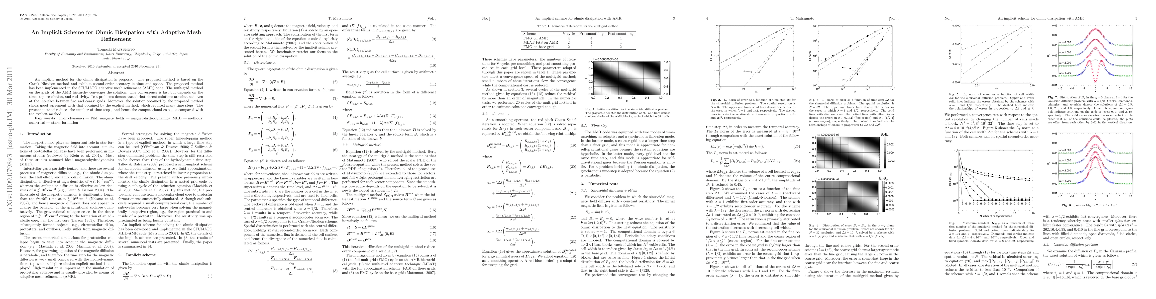 This paper proposes an implicit Crank-Nicolson method for ohmic dissipation, achieving second-order accuracy in time and space. Implemented in an adaptive mesh refinement code, it demonstrates fast convergence and good agreement with explicit methods, significantly reducing computational costs.