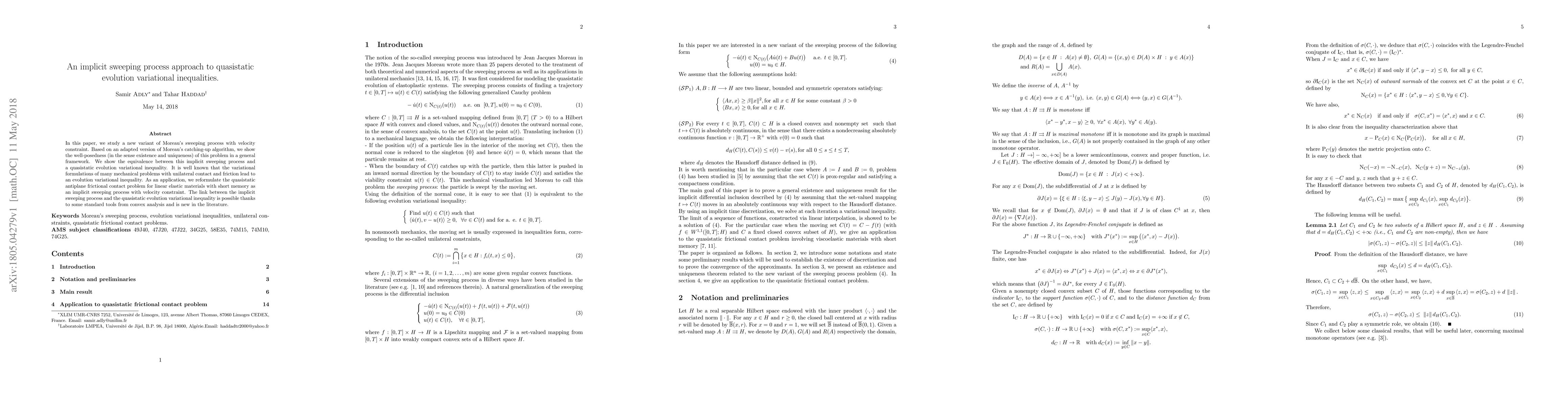 This paper introduces a new variant of Moreau's sweeping process with a velocity constraint, demonstrating its well-posedness and equivalence to a quasistatic evolution variational inequality. It applies this approach to reformulate the quasistatic antiplane frictional contact problem for linear elastic materials.
