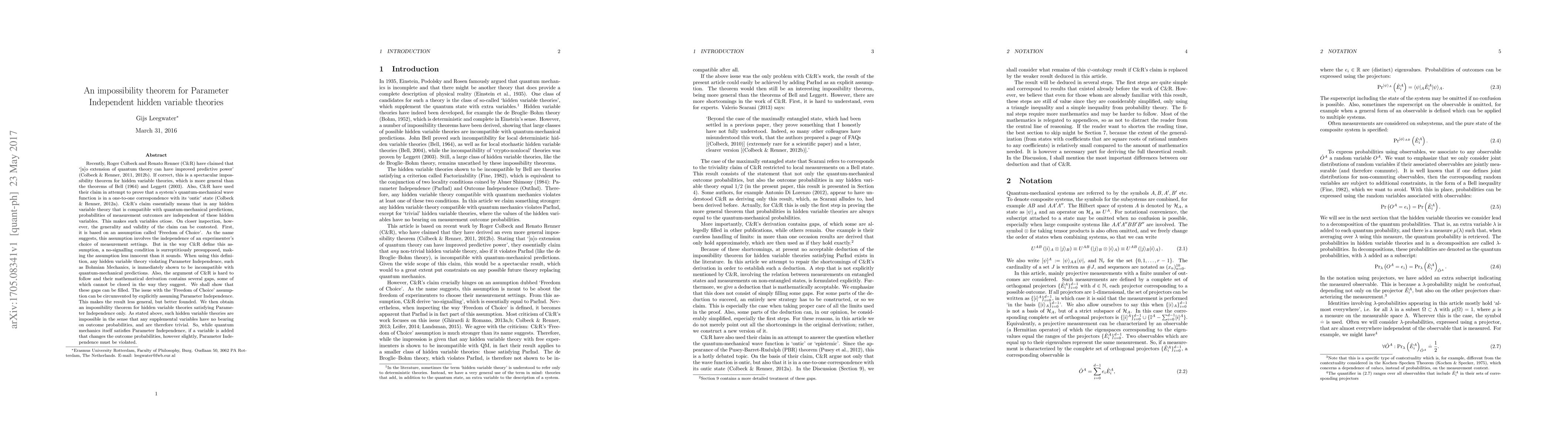 Recently, Roger Colbeck and Renato Renner (C&R) have claimed that '[n]o extension of quantum theory can have improved predictive power'. If correct, this is a spectacular impossibility theorem for hidden variable theories, which is more general than the theorems of Bell and Leggett. C&R's claim essentially means that in any hidden variable theory that is compatible with quantum-mechanical predictions, probabilities of measurement outcomes are independent of these hidden variables. On closer inspection, however, the generality and validity of the claim can be contested. First, it is based on an assumption called 'Freedom of Choice'. As the name suggests, this assumption involves the independence of an experimenter's choice of measurement settings. But in the way C&R define this assumption, a no-signalling condition is surreptitiously presupposed, making the assumption less innocent than it sounds. When using this definition, any hidden variable theory violating Parameter Independence, such as Bohmian Mechanics, is immediately shown to be incompatible with quantum-mechanical predictions. Also, the argument of C&R is hard to follow and their mathematical derivation contains several gaps, some of which cannot be closed in the way they suggest. We shall show that these gaps can be filled. The issue with the 'Freedom of Choice' assumption can be circumvented by explicitly assuming Parameter Independence. This makes the result less general, but better founded. We then obtain an impossibility theorem for hidden variable theories satisfying Parameter Independence only. So, while quantum mechanics itself satisfies Parameter Independence, if a variable is added that changes the outcome probabilities, however slightly, Parameter Independence must be violated.