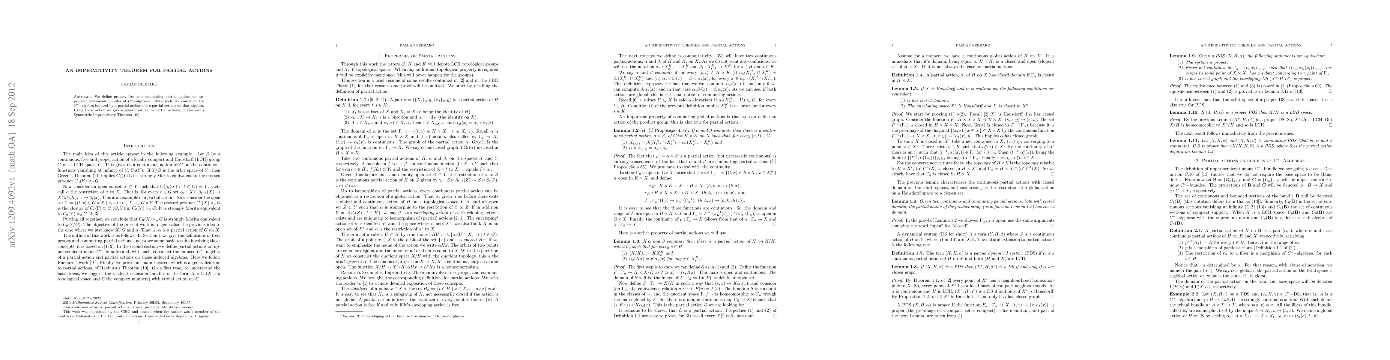 We define proper, free and commuting partial actions on upper semicontinuous bundles of $C^*-$algebras. With such, we construct the $C^*-$algebra induced by a partial action and a partial actions on that algebra. Using those action we give a generalization, to partial actions, of Raeburn's Symmetric Imprimitivity Theorem.