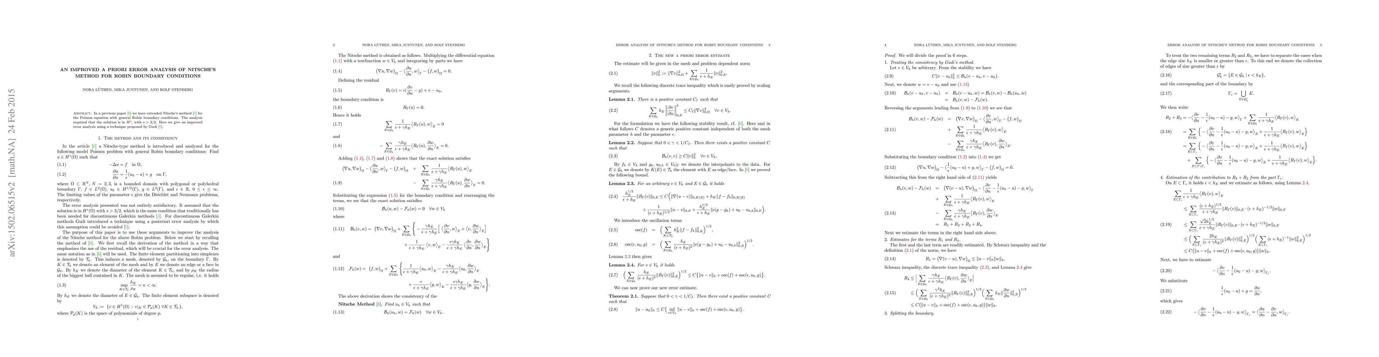 The research improves the a priori error analysis of Nitsche's method for the Poisson equation with general Robin boundary conditions, previously requiring solution regularity in H^s with s > 3/2.