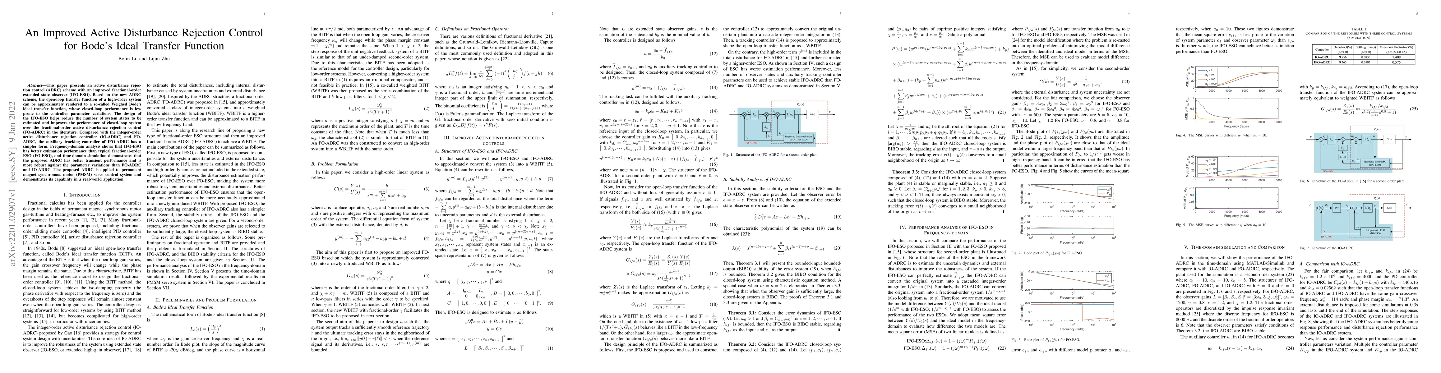 This paper presents an improved active disturbance rejection control (ADRC) scheme using a fractional-order extended state observer (IFO-ESO) that renders high-order system transfer functions to a weighted Bode's ideal transfer function, enhancing robustness and performance. The IFO-ESO simplifies the auxiliary tracking controller and shows superior estimation and transient performance compared to existing ADRC methods.