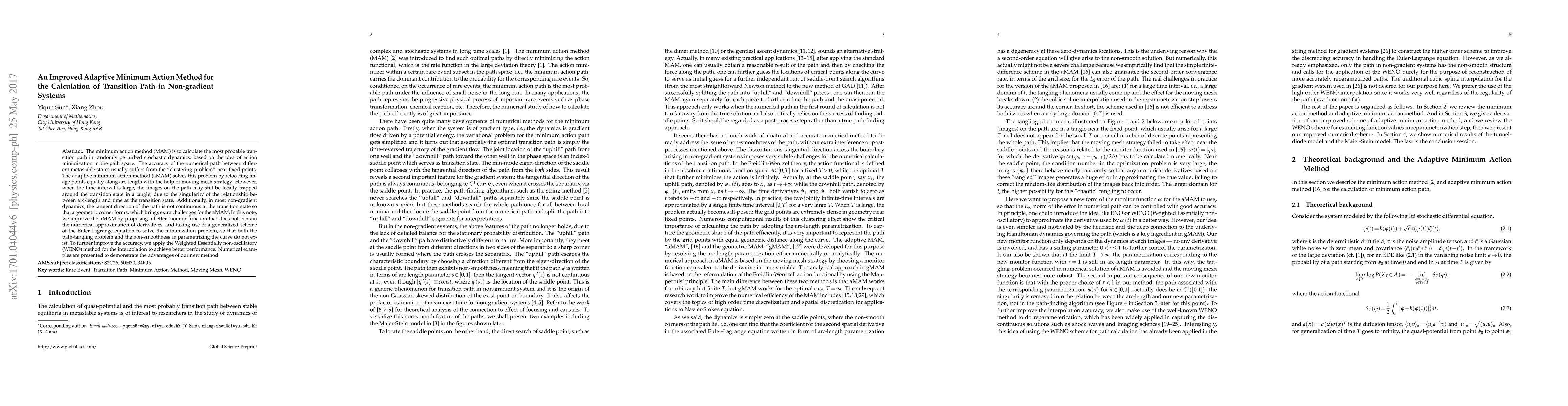 The minimum action method (MAM) is to calculate the most probable transition path in randomly perturbed stochastic dynamics, based on the idea of action minimization in the path space. The accuracy of the numerical path between different metastable states usually suffers from the "clustering problem" near fixed points. The adaptive minimum action method (aMAM) solves this problem by relocating image points equally along arc-length with the help of moving mesh strategy. However, when the time interval is large, the images on the path may still be locally trapped around the transition state in a tangle, due to the singularity of the relationship between arc-length and time at the transition state. Additionally, in most non-gradient dynamics, the tangent direction of the path is not continuous at the transition state so that a geometric corner forms, which brings extra challenges for the aMAM. In this note, we improve the aMAM by proposing a better monitor function that does not contain the numerical approximation of derivatives, and taking use of a generalized scheme of the Euler-Lagrange equation to solve the minimization problem, so that both the path-tangling problem and the non-smoothness in parametrizing the curve do not exist. To further improve the accuracy, we apply the Weighted Essentially non-oscillatory (WENO) method for the interpolation to achieve better performance. Numerical examples are presented to demonstrate the advantages of our new method.