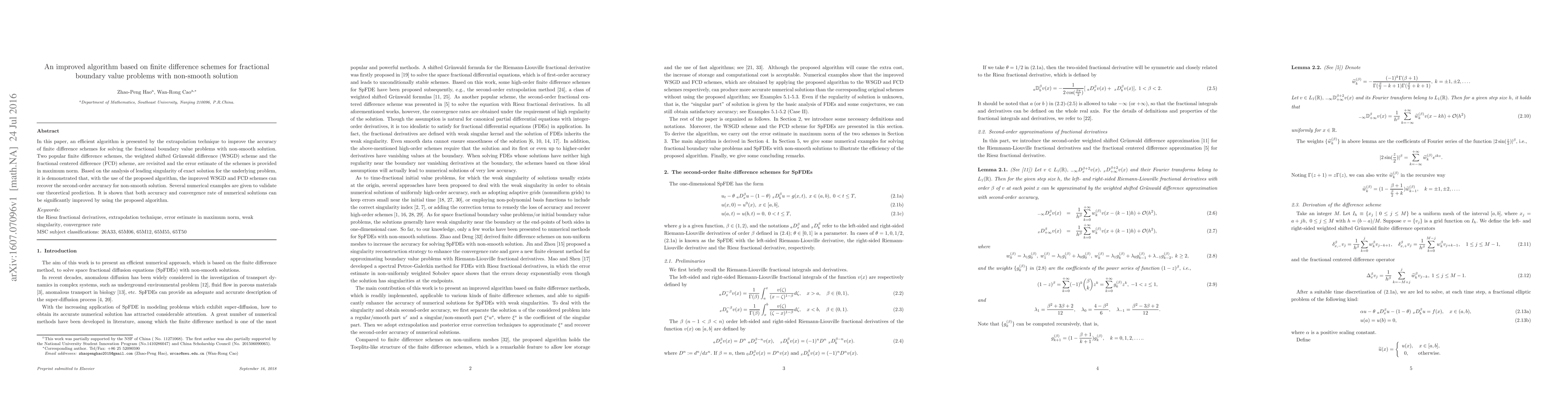 In this paper, an efficient algorithm is presented by the extrapolation technique to improve the accuracy of finite difference schemes for solving the fractional boundary value problems with non-smooth solution. Two popular finite difference schemes, the weighted shifted Gr\"{u}nwald difference (WSGD) scheme and the fractional centered difference (FCD) scheme, are revisited and the error estimate of the schemes is provided in maximum norm. Based on the analysis of leading singularity of exact solution for the underlying problem, it is demonstrated that, with the use of the proposed algorithm, the improved WSGD and FCD schemes can recover the second-order accuracy for non-smooth solution. Several numerical examples are given to validate our theoretical prediction. It is shown that both accuracy and convergence rate of numerical solutions can be significantly improved by using the proposed algorithm.