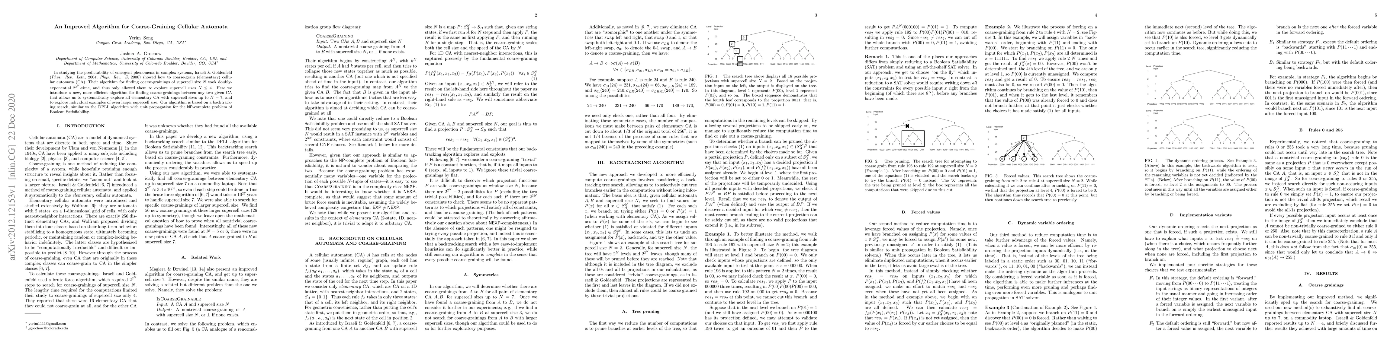 In studying the predictability of emergent phenomena in complex systems, Israeli & Goldenfeld (Phys. Rev. Lett., 2004; Phys. Rev. E, 2006) showed how to coarse-grain (elementary) cellular automata (CA). Their algorithm for finding coarse-grainings of supercell size $N$ took doubly-exponential $2^{2^N}$-time, and thus only allowed them to explore supercell sizes $N \leq 4$. Here we introduce a new, more efficient algorithm for finding coarse-grainings between any two given CA that allows us to systematically explore all elementary CA with supercell sizes up to $N=7$, and to explore individual examples of even larger supercell size. Our algorithm is based on a backtracking search, similar to the DPLL algorithm with unit propagation for the NP-complete problem of Boolean Satisfiability.