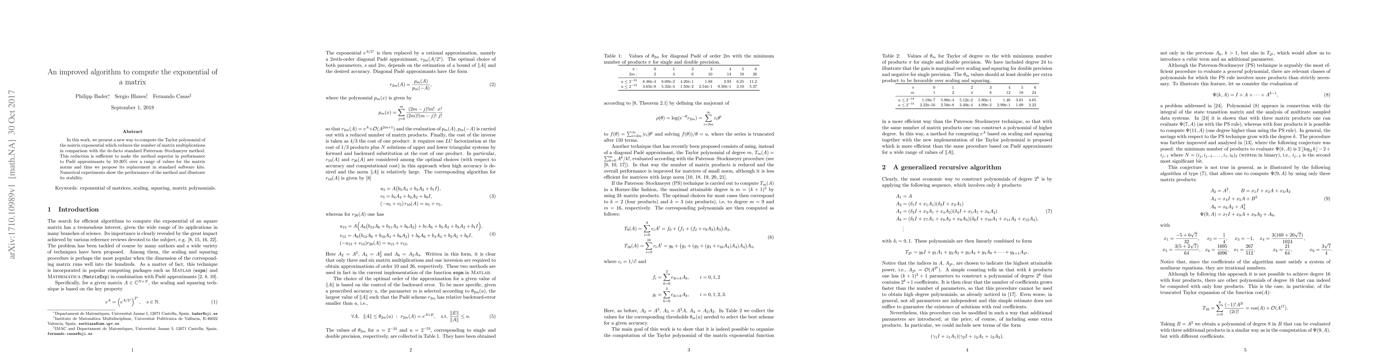 A new algorithm reduces matrix multiplications to compute the exponential of a matrix, outperforming existing methods by 10-30% for high matrix norms.