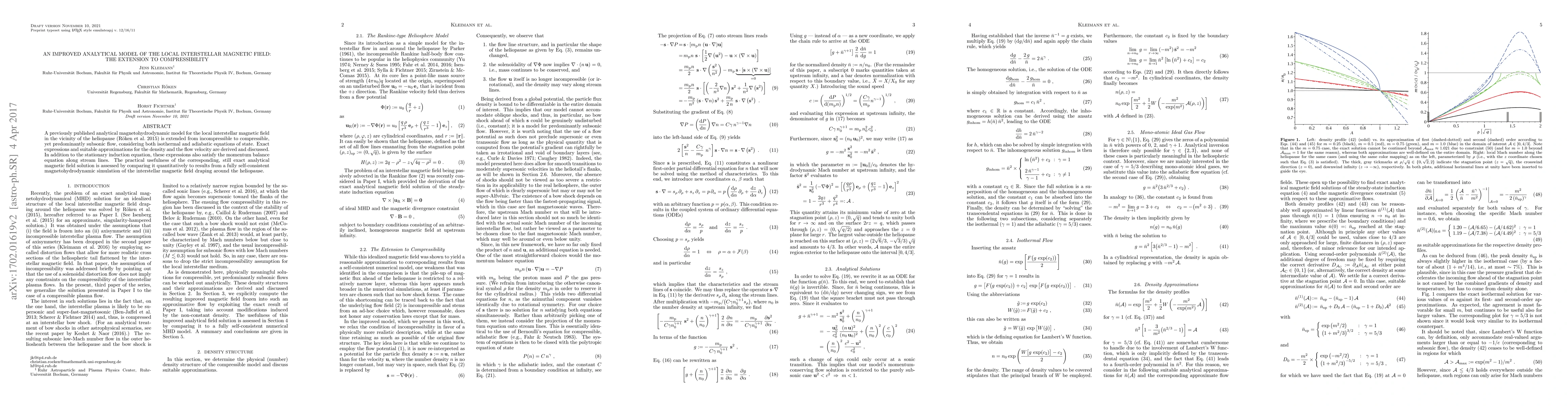 This paper extends an existing analytical model for the local interstellar magnetic field to account for compressibility in subsonic flow, considering both isothermal and adiabatic equations of state. The derived expressions for density and flow velocity are compared against magnetohydrodynamic simulations to assess their practical utility.