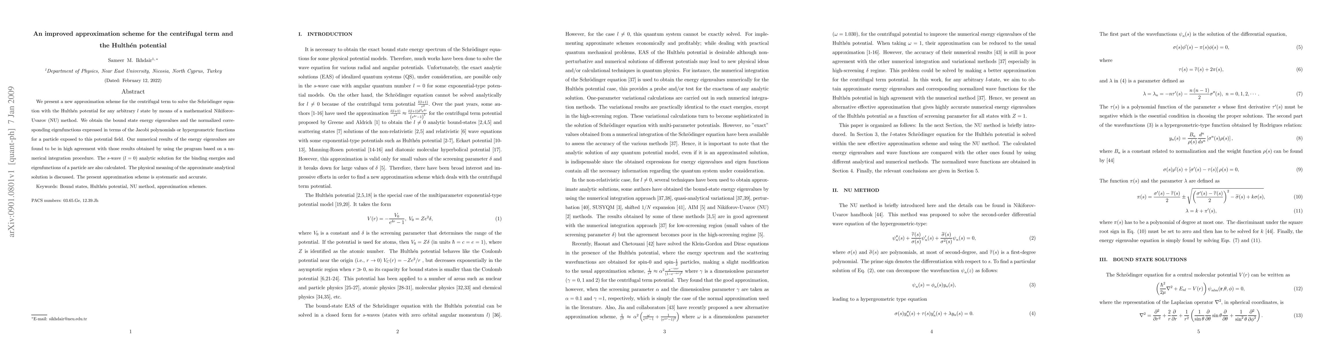 Researchers developed a new method to solve the Schrodinger equation for particles exposed to the Hulthen potential, providing accurate bound state energy eigenvalues and eigenfunctions with good agreement with numerical results.
