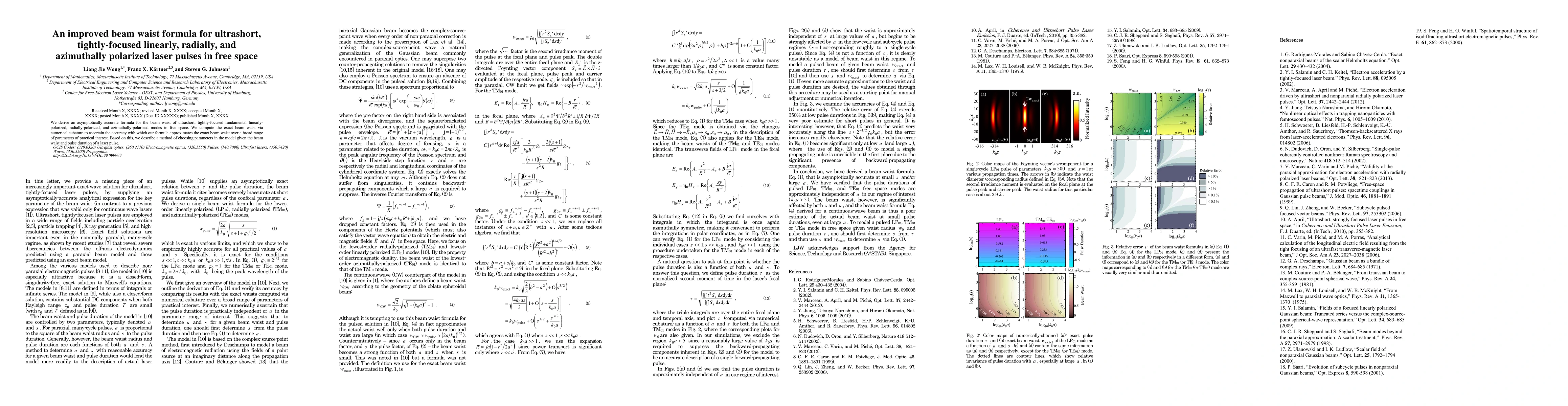 This paper presents an improved formula for calculating the beam waist of ultrashort, linearly, radially, and azimuthally polarized laser pulses in free space, validated through numerical cubature. It also provides a method for selecting model parameters based on the desired beam waist and pulse duration.