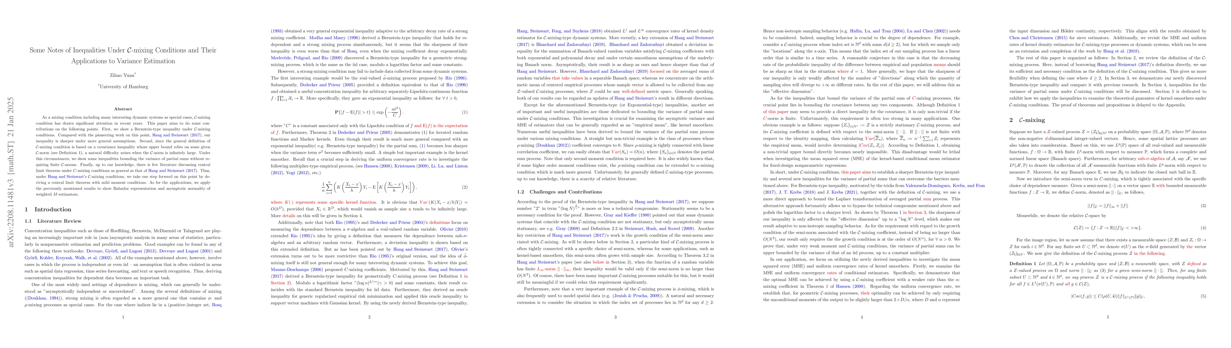 There are many processes, particularly dynamic systems, that cannot be described as strong mixing processes. \citet{maume2006exponential} introduced a new mixing coefficient called C-mixing, which includes a large class of dynamic systems. Based on this, \citet{hang2017bernstein} obtained a Bernstein-type inequality for a geometric C-mixing process, which, modulo a logarithmic factor and some constants, coincides with the standard result for the iid case. In order to honor this pioneering work, we conduct follow-up research in this paper and obtain an improved result under more general preconditions. We allow for a weaker requirement for the semi-norm condition, fully non-stationarity, non-isotropic sampling behavior. Our result covers the case in which the index set of processes lies in $\mathbf{Z}^{d+}$ for any given positive integer $d$. Here $\mathbf{Z}^{d+}$ denotes the collection of all nonnegative integer-valued $d$-dimensional vector. This setting of index set takes both time and spatial data into consideration. For our application, we investigate the theoretical guarantee of multiple kernel-based nonparametric curve estimators for C-Mixing-type processes. More specifically we firstly obtain the $L^{\infty}$-convergence rate of the kernel density estimator and then discuss the attainability of optimality, which can also be regarded as an upate of the result of \citet{hang2018kernel}. Furthermore, we investigate the uniform convergence of the kernel-based estimators of the conditional mean and variance function in a heteroscedastic nonparametric regression model. Under a mild smoothing condition, these estimators are optimal. At last, we obtain the uniform convergence rate of conditional mode function.