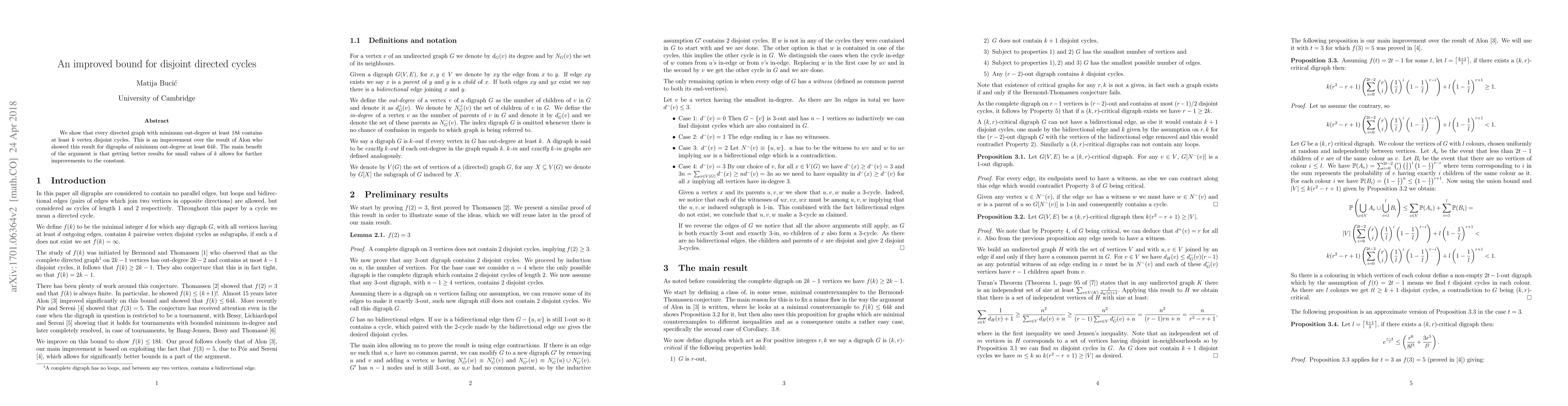 A directed graph with a minimum out-degree of at least 18k contains at least k disjoint cycles, improving upon an earlier result for graphs with a minimum out-degree of 64k.