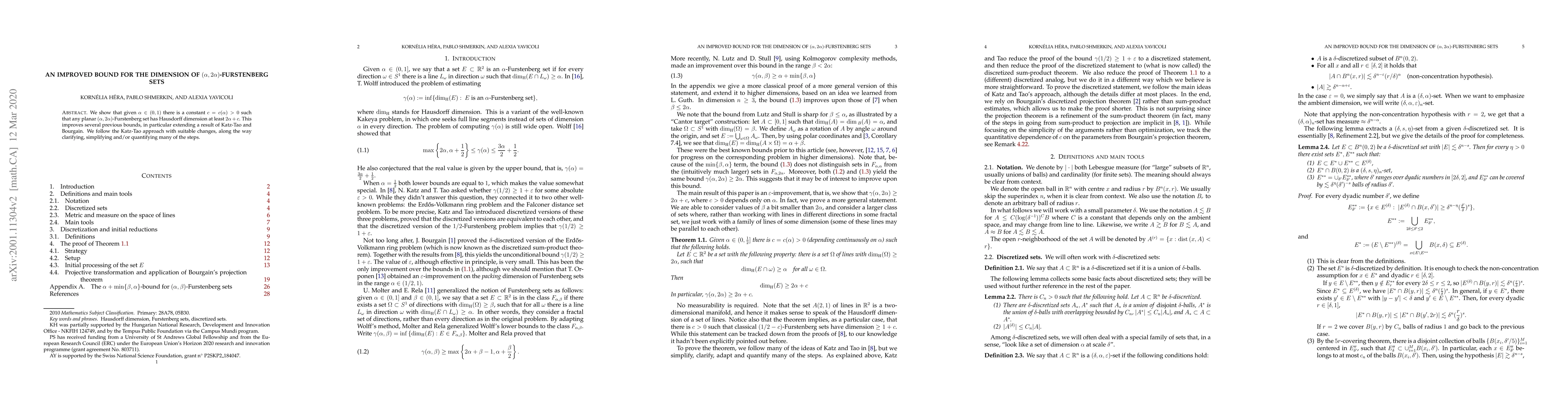 Researchers improved a bound for the dimension of Furstenberg sets, showing that certain sets have a Hausdorff dimension at least 2 times the parameter alpha plus a constant c greater than zero.