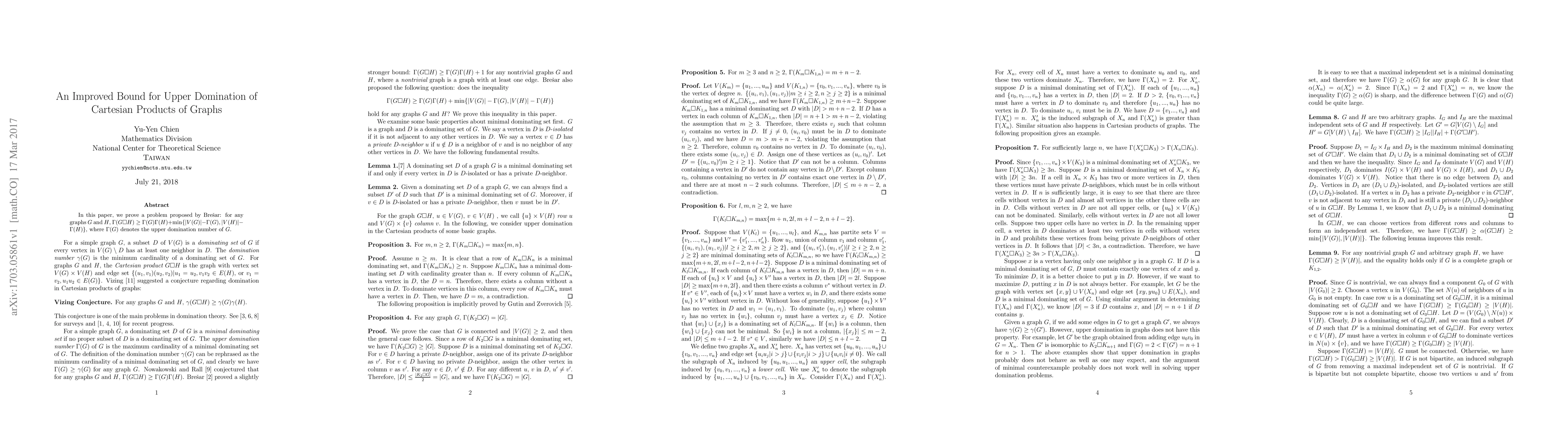 In this paper, we prove a problem proposed by Bre\v{s}ar: for any graphs $G$ and $H$, $\Gamma(G\square H)\ge\Gamma(G)\Gamma(H)+ \min\{|V(G)|-\Gamma(G),|V(H)|-\Gamma(H)\}$, where $\Gamma(G)$ denotes the upper domination number of $G$.