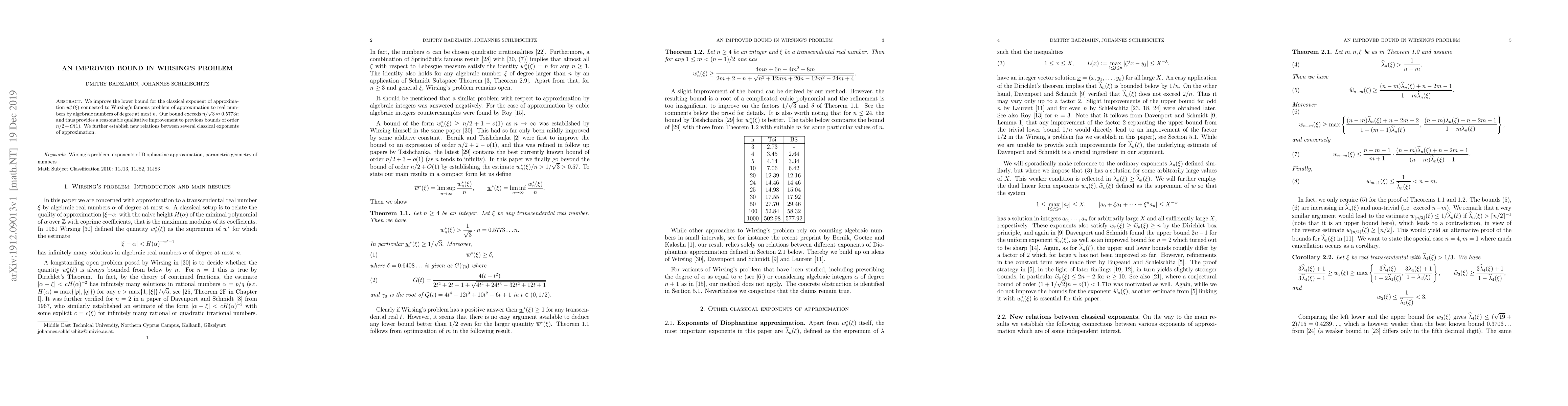 This paper improves the lower bound for approximating real numbers with algebraic numbers of degree at most n, exceeding a previous bound of n/sqrt(3) and providing new insights into classical exponents of approximation.