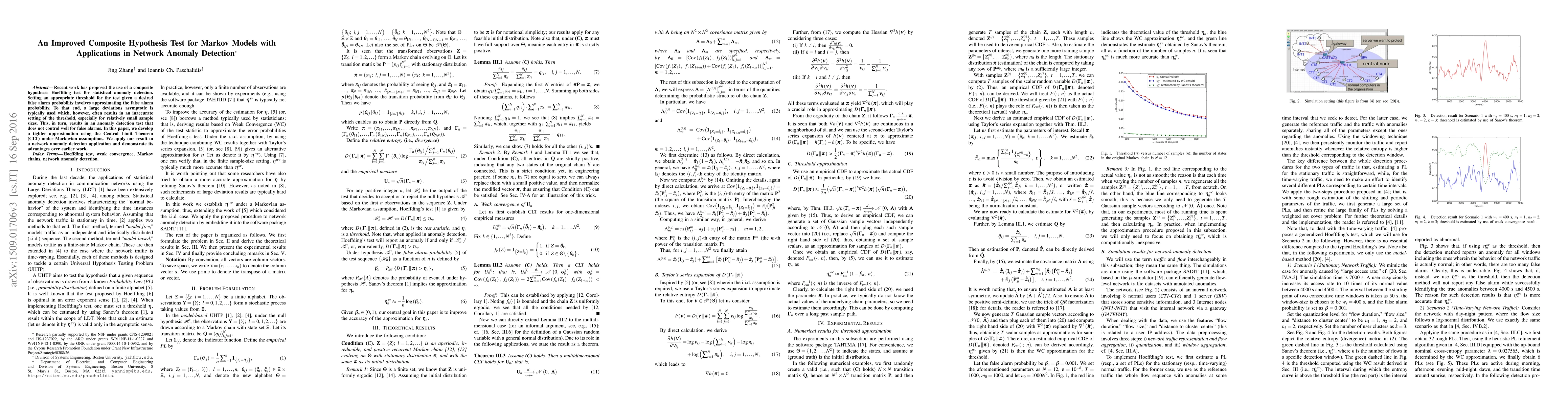 This paper presents an improved composite hypothesis test for Markov models, utilizing a tighter Central Limit Theorem approximation to better control false alarms in network anomaly detection compared to previous large deviations asymptotic methods. The new approach demonstrates superior performance in detecting anomalies with more accurate threshold settings.