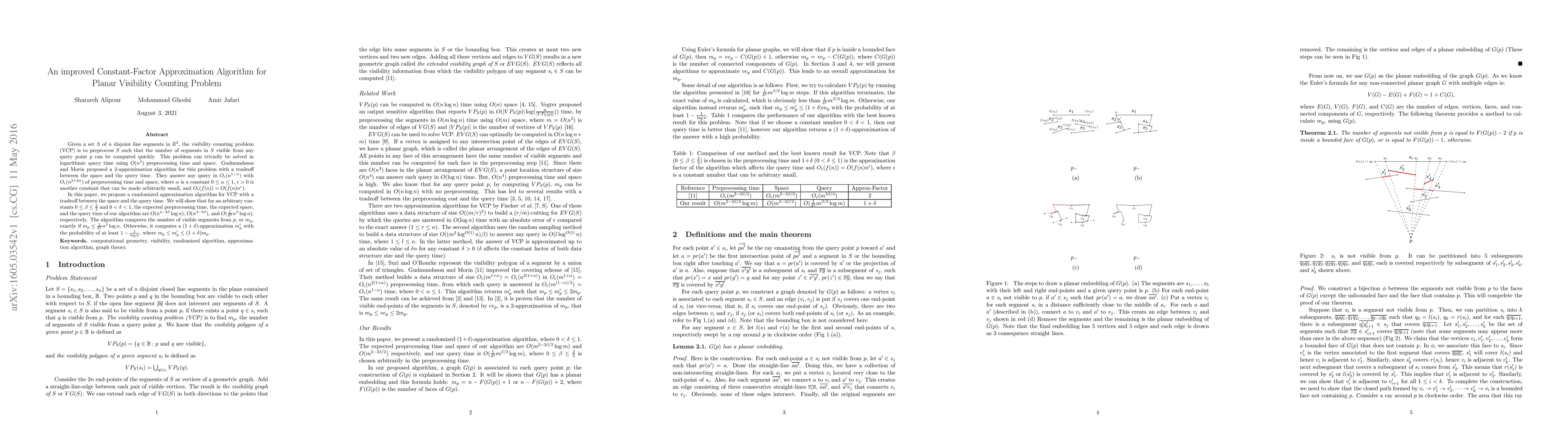 This paper presents a randomized approximation algorithm for the Planar Visibility Counting Problem (VCP), achieving a tradeoff between space and query time. The algorithm has expected preprocessing time $O(n^{4-3\beta}\log n)$, space $O(n^{4-3\beta})$, and query time $O(\frac{1}{\delta^3}n^{\beta}\log n)$, providing exact counts for small visibility values and $(1+\delta)$-approximations otherwise with high probability.