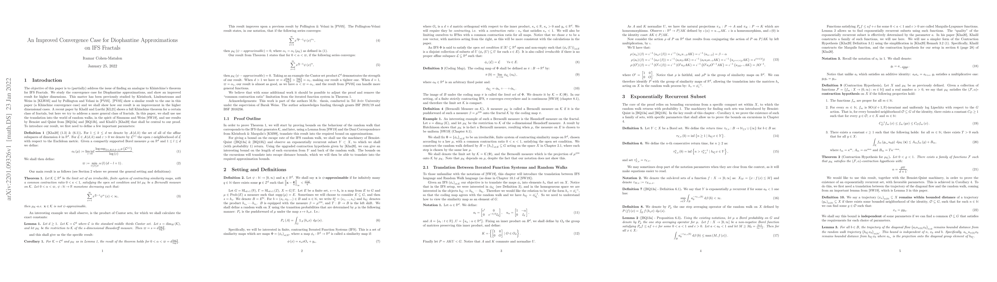This paper improves upon previous results by Pollington and Velani regarding Khintchine's theorem analogue for IFS Fractals, specifically addressing the convergence case for Diophantine approximations in higher dimensions. The authors demonstrate a more refined outcome in these higher-dimensional scenarios.