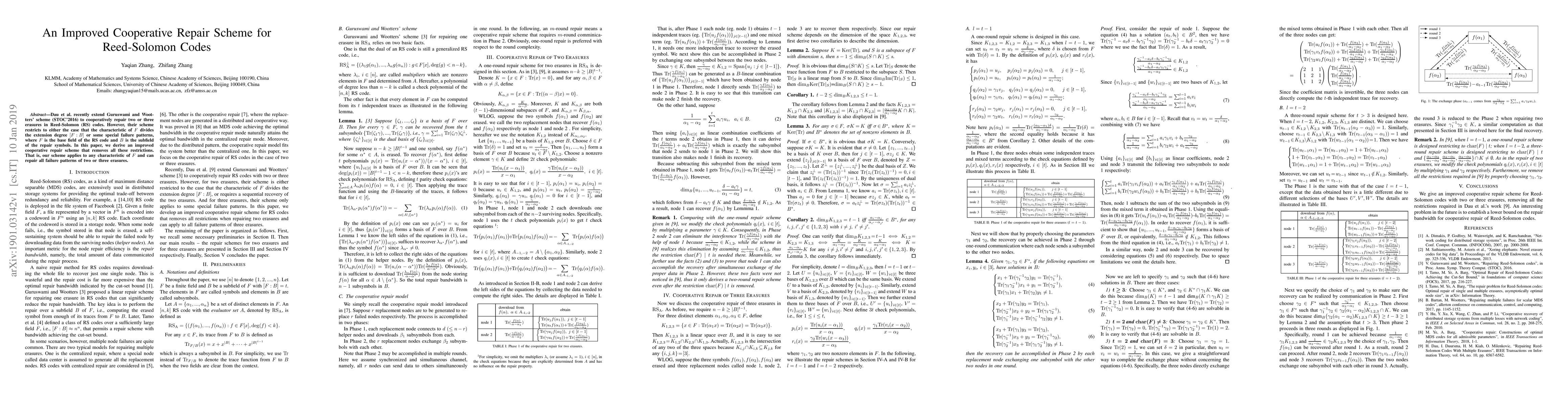 This paper presents an improved repair scheme for Reed-Solomon codes, removing restrictions from a previous scheme by Dau et al. The new method can handle any characteristic of the base field and repair all patterns of two or three erasures.