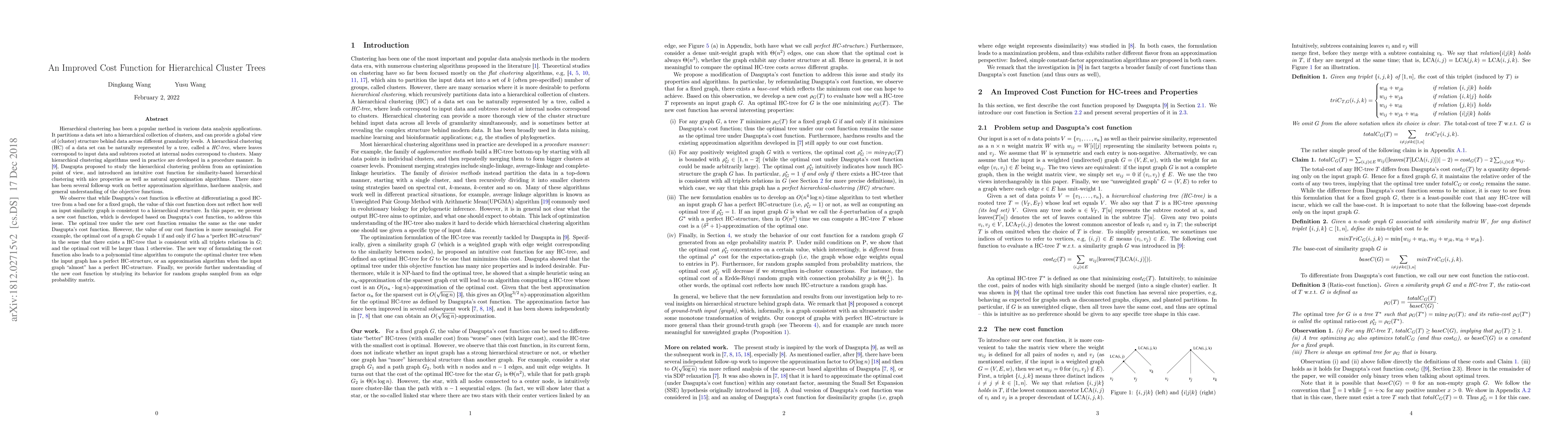 This paper introduces an improved cost function for hierarchical cluster trees, building on Dasgupta's existing cost function, to better reflect the consistency of an input similarity graph with a hierarchical structure. The new cost function maintains the optimal tree structure while providing more meaningful values and enabling efficient computation for perfect or near-perfect hierarchical structures.